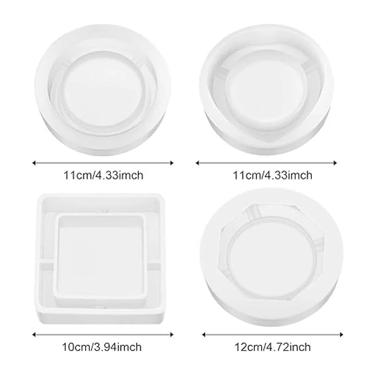 Molde de resina de posavasos: recibirás 4 moldes de silicona de posavasos, 1 molde de bandeja en forma de corazón, 1 molde de bandeja redonda, 1 molde de silicona de resina cuadrada, 1 molde de molde de molde en forma de rombo, que puede satisfacer tus diversas necesidades de bricolaje.