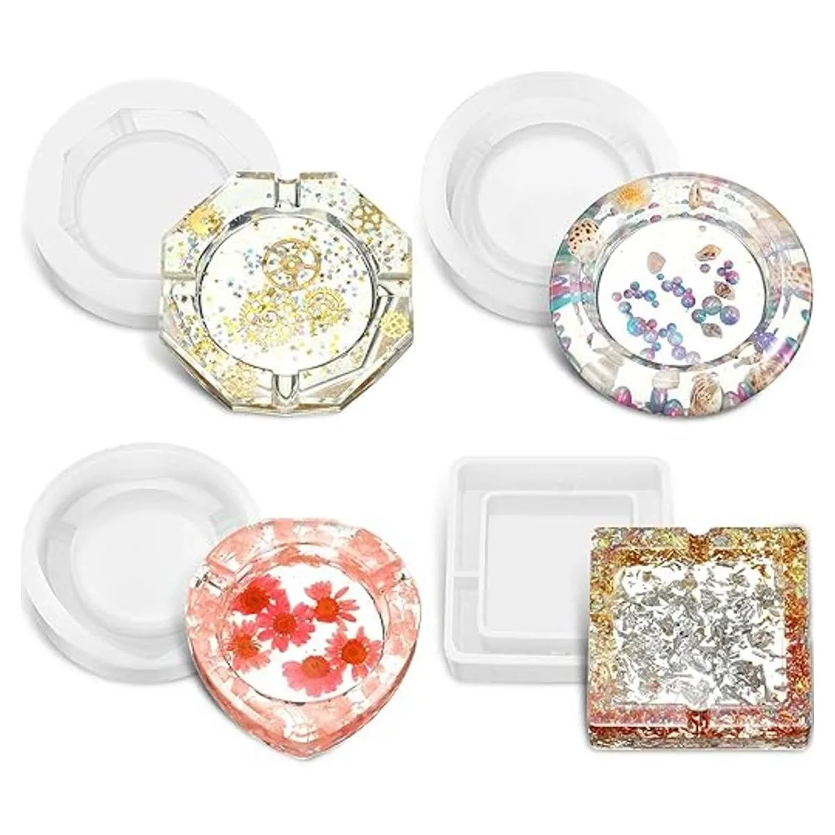 4 piezas de silicona gran cenicero resina molde cuadrado Coaster Casting Mold en forma de corazón Ashray Mold Rhombus forma Coaster molde forma redonda Epoxy molde para bricolaje resina molde, 4 estilos