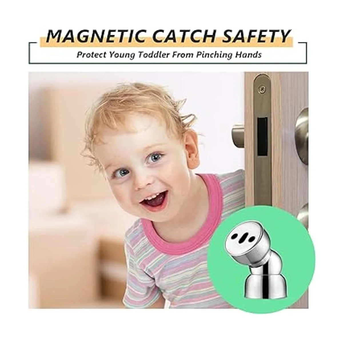 Sujeta y detiene la puerta: el tope magnético de puerta puede sostener y detener la puerta, evitando que tu pared se cambie antiestéticamente; ten en cuenta que hay un ruido notable cuando se toca el imán, no es muy fuerte ni molesto, pero ten esto en cuenta