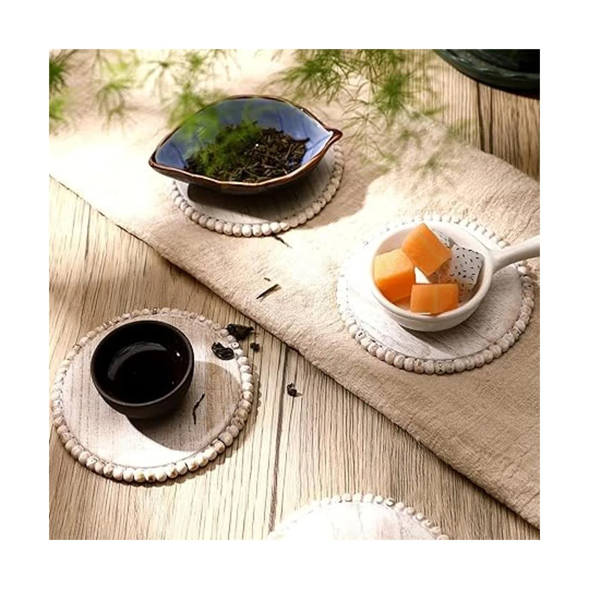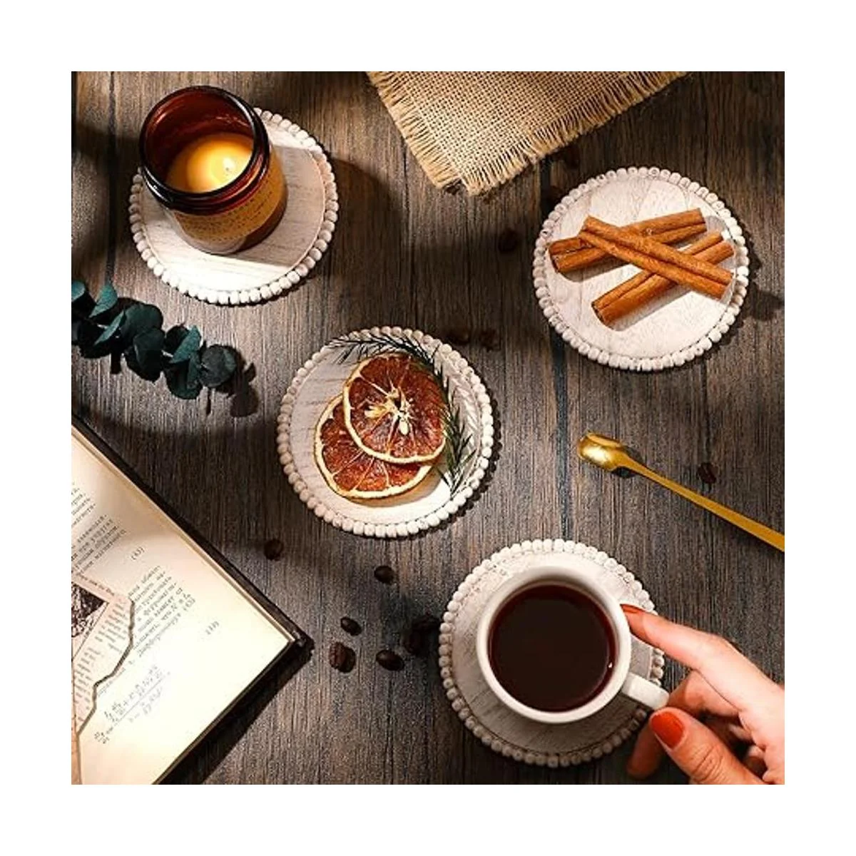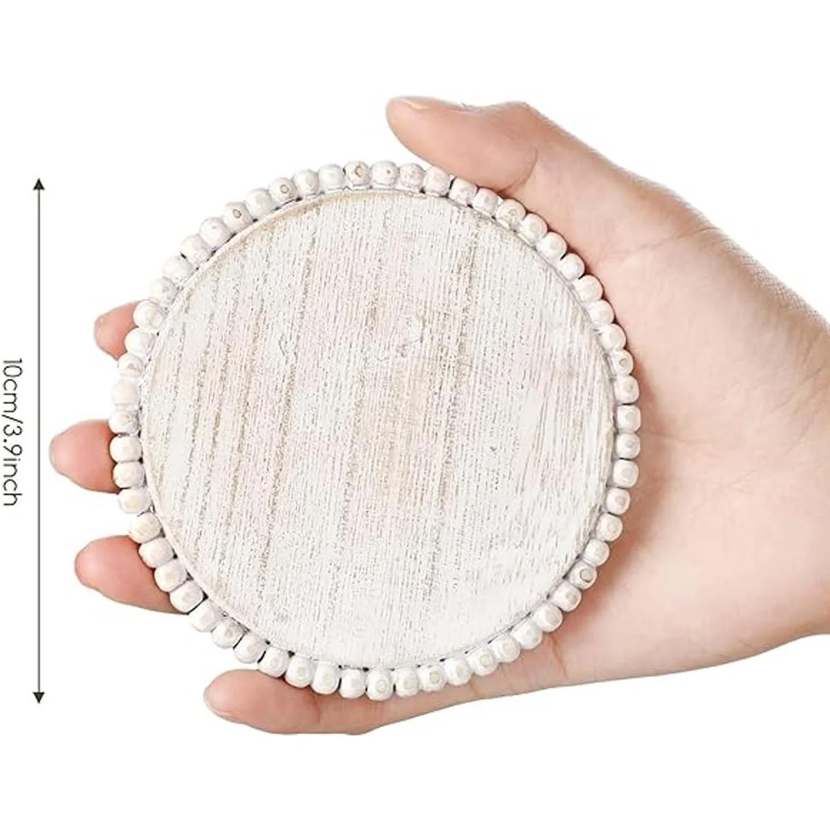 4 posavasos de madera con cuentas de 3.9 pulgadas, redondos, rústicos, de madera para bebidas, posavasos decorativos, juego de posavasos de madera para inauguración de la casa, cocina en el hogar beige