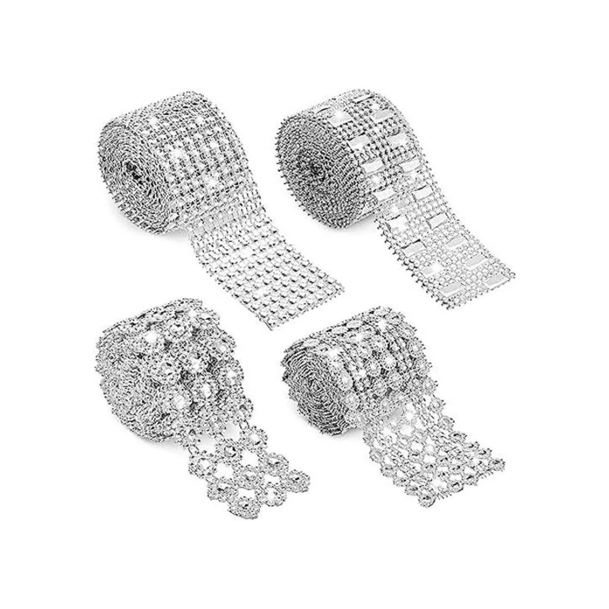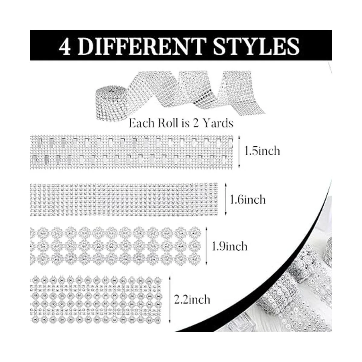 4 rollos de 8 yardas con forma de flor de diamantes de imitación, cinta de malla con diamantes de imitación para manualidades, cinta de cristal para boda, fiesta de cumpleaños, suministros de automóvil