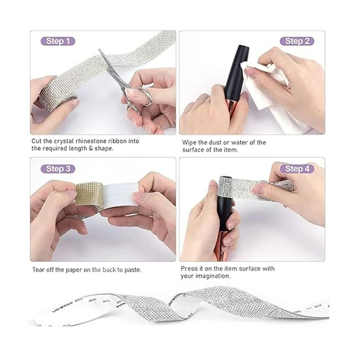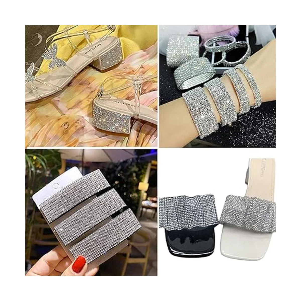 Amplia aplicación : estas cintas autoadhesivas de diamantes de imitación de cristal se pueden aplicar a varias ocasiones y varios artículos; adecuadas para envolver regalos, decoración de bodas, decoración de cumpleaños, teléfono móvil, ordenadores portátiles, tazas, incluso en zapatos, decoración de pasteles, cargador de teléfono móvil, etc.