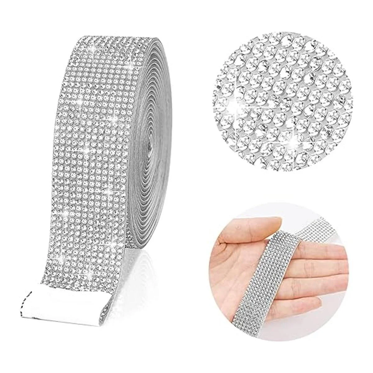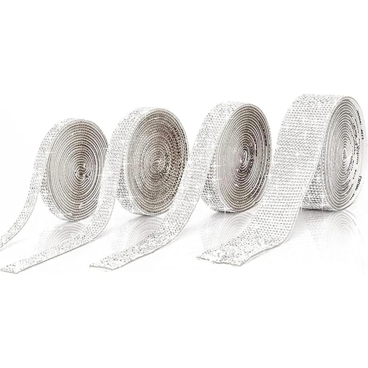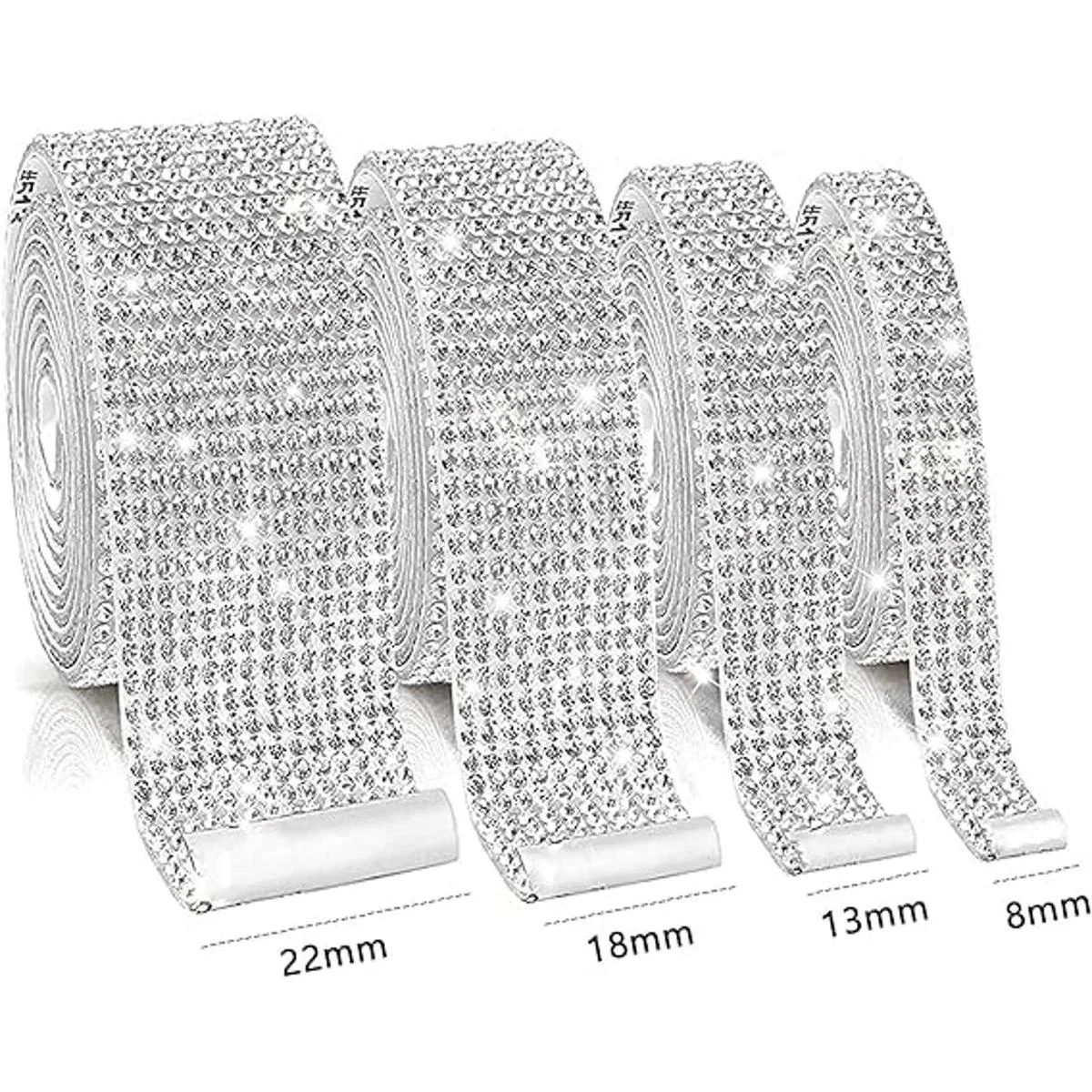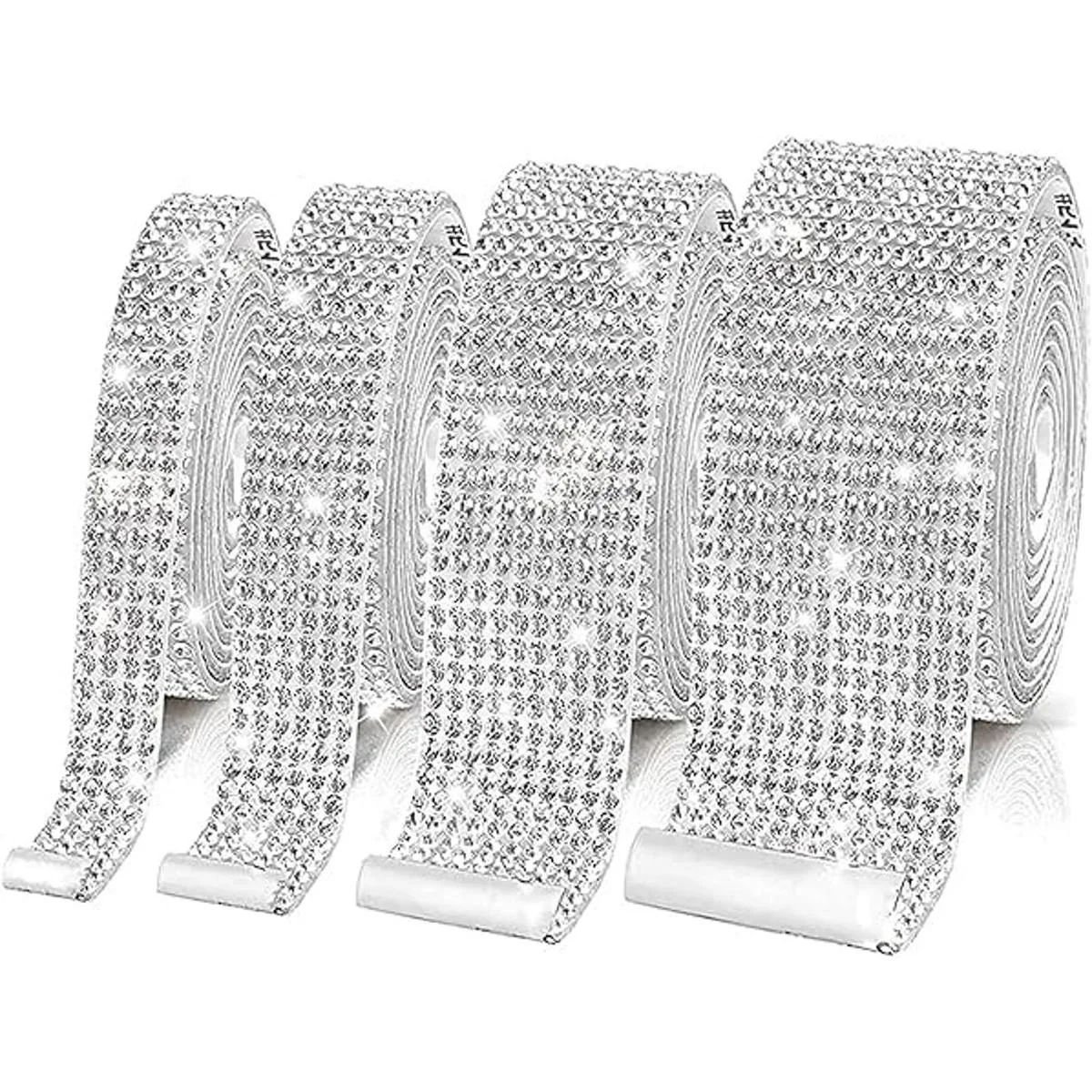 4 rollos de cinta autoadhesiva con diamantes de imitación de cristal y diamantes de imitación de 0.079 in para manualidades, cinta blanca para tarta, boda, florero, suministros de fiestabricolaje evento coche teléfono decoración