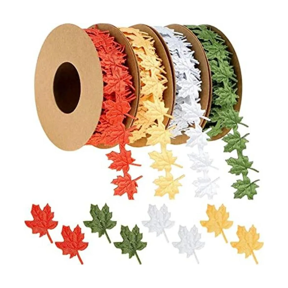 Material de calidad: la cinta de hoja de arce de 5 yardas está hecha de poliéster de calidad, que es elástico y brillante, el material es fiable, no tienes que preocuparte de que se desvanezca, rompa o deforme, pueden servir y almacenarse durante mucho tiempo