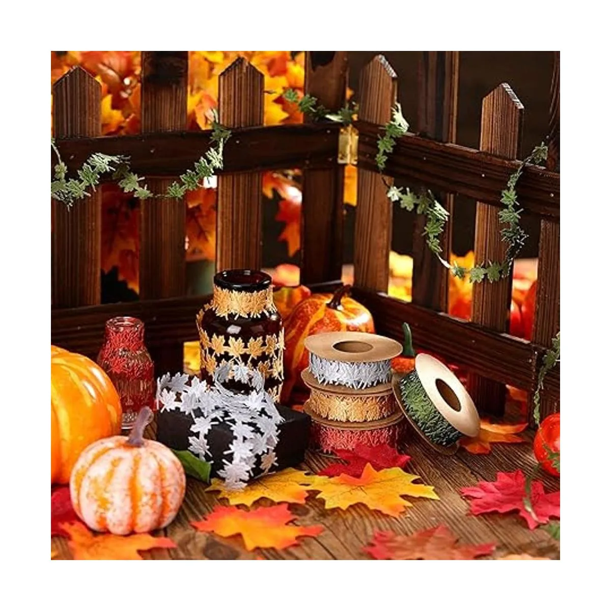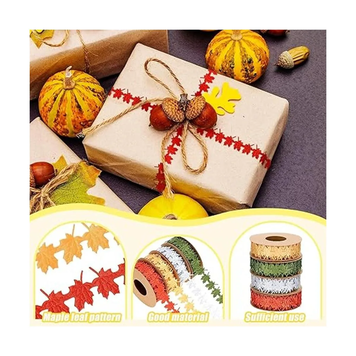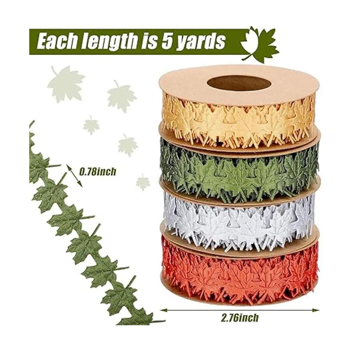 4 rollos de cinta de hoja de arce de Acción de Gracias de 5 yardas, oro, plata, verde, naranja, rollo de hojas doradas para manualidades, lazos, coronas, envoltorios, collares, ramos de suministros para decoración del hogar