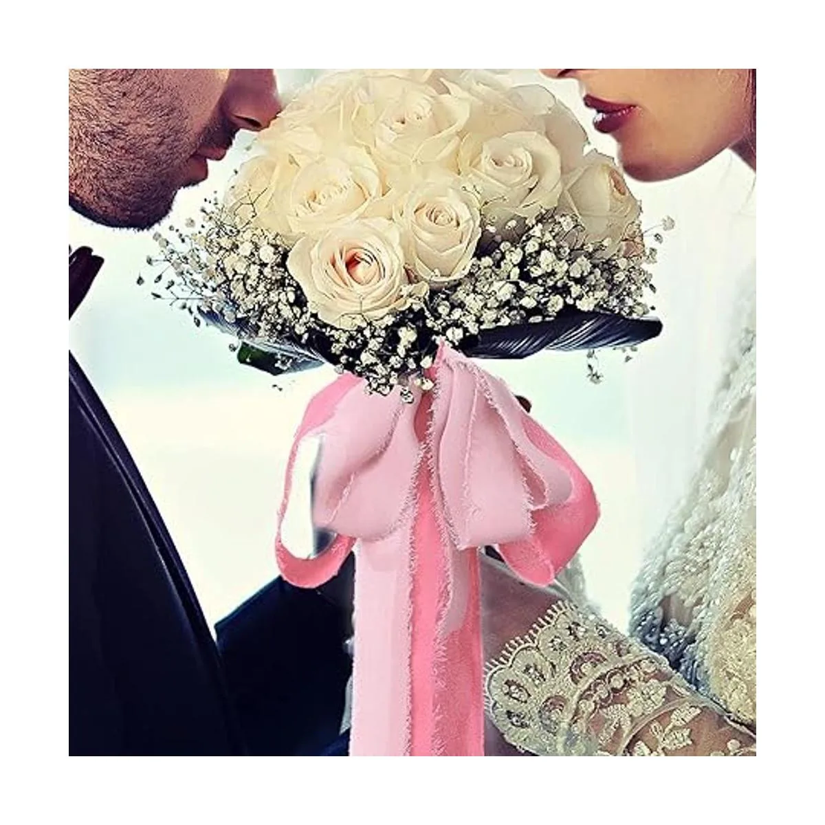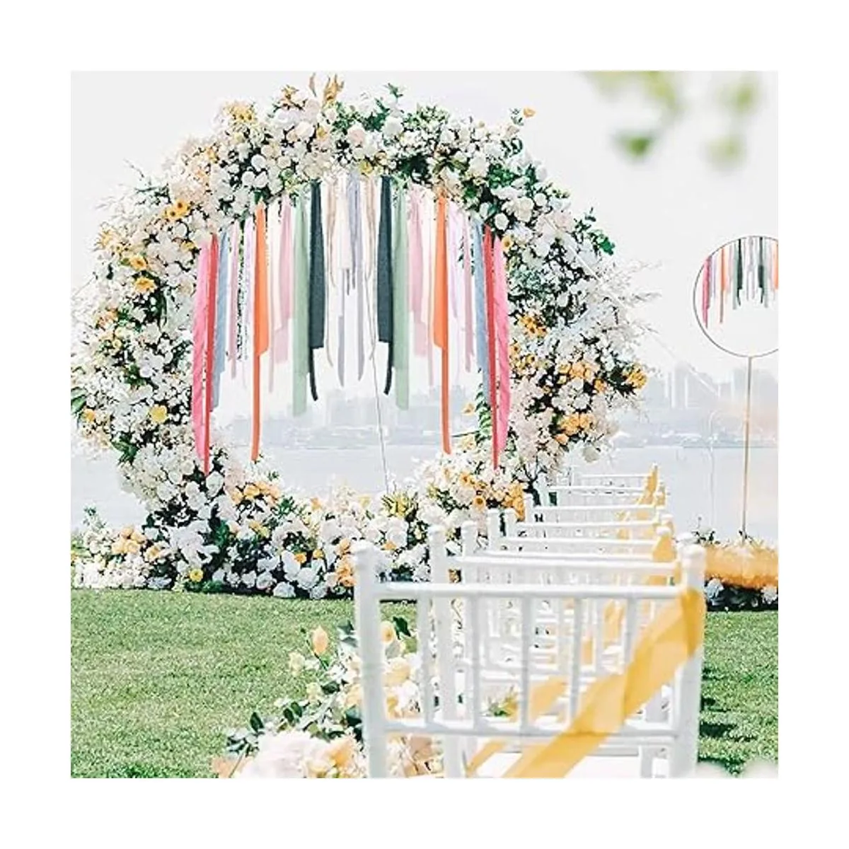 Escena aplicable : la cinta de gasa con borlas es muy suave, hermosa y delicada. Ideal para ramos, bricolaje, envoltura de regalos, decoración de fondo, recién nacido, ramillete, envoltura de ramo de boda, también se puede utilizar como un cinturón de silla para una boda o despedida de soltera, cinta con flecos para tarjetas de agradecimiento en la mesa, para que coincida con los colores de boda o incluso envoltura de regalos de Navidad.