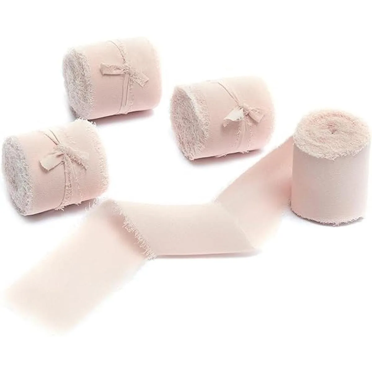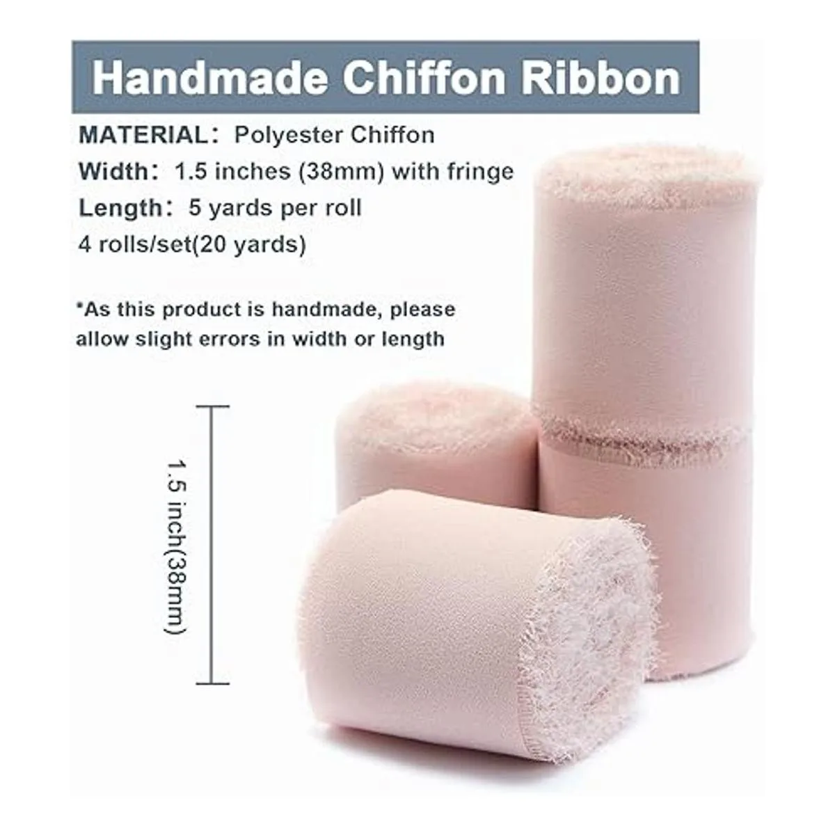 4 rollos de cinta de seda de gasa de 1.5 pulgadas de ancho x 5 yardas de largo, color rosa claro, hechos a mano, bordes deshilachados para invitaciones de boda, ramos de novia, envoltura de regalos, manualidades de bricolaje, fabricación de lazos 1.5 x 20 yardas, rosa claro