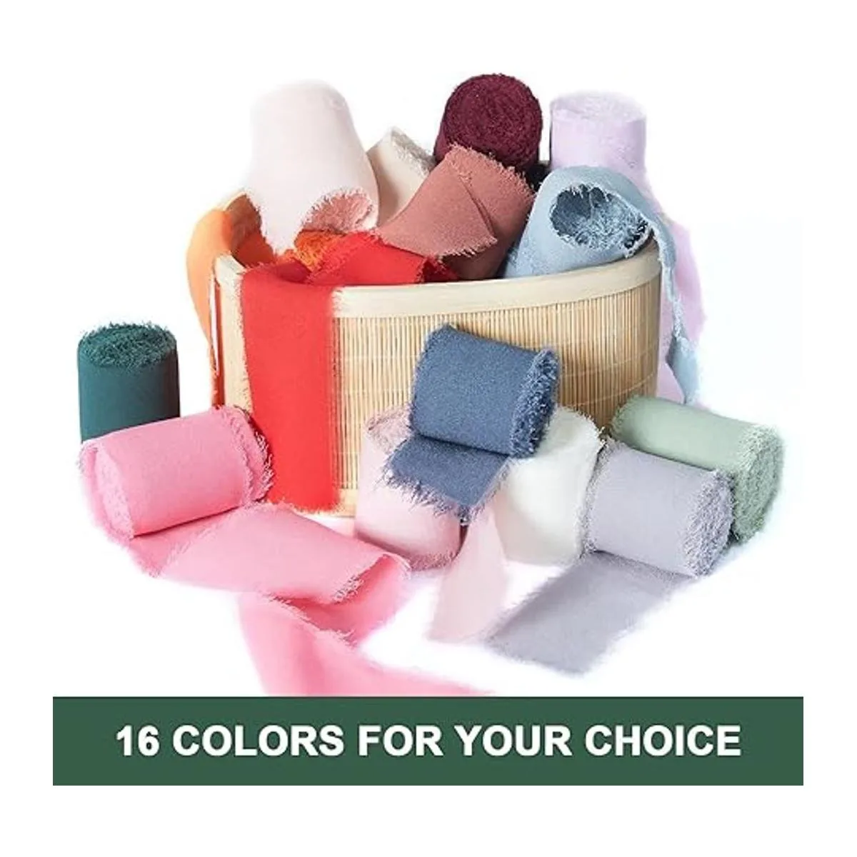 Múltiples opciones: nuestras cintas de gasa con flecos están disponibles en 3 anchos y 16 colores para tu elección. Las cintas de diferentes colores representan diferentes significados y cumplen con la aplicación de varios festivales y escenas.