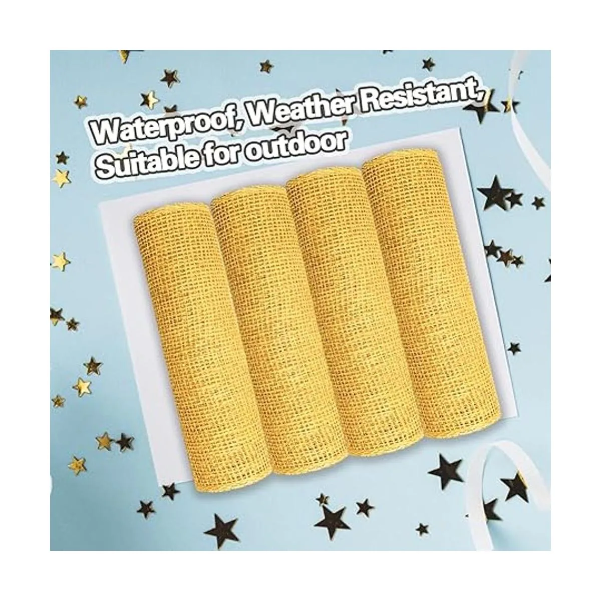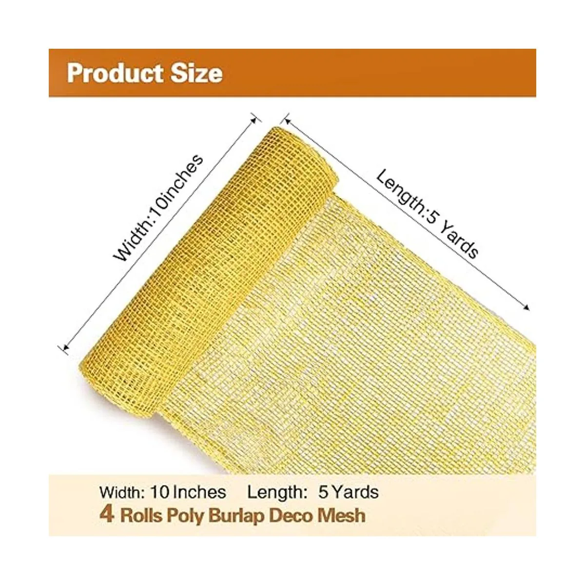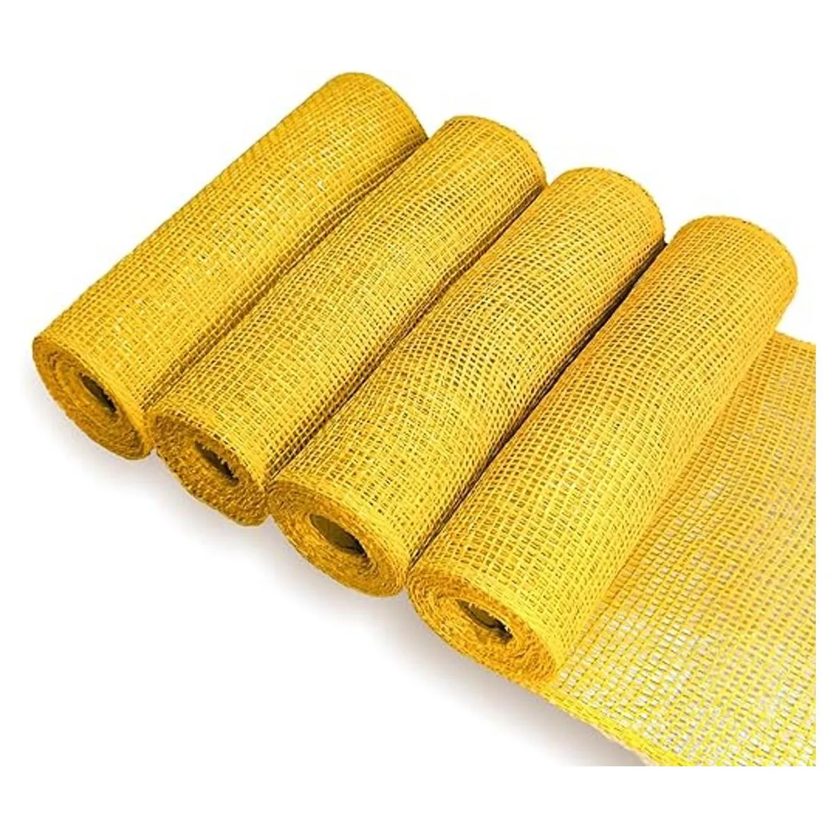 4 rollos de malla de arpillera de polietileno amarillo de 10 pulgadas, 15 pies cada rollo, cinta de malla decorativa de poliéster amarillo para suministros de corona, decoración de fiestas, manualidades, manualidades