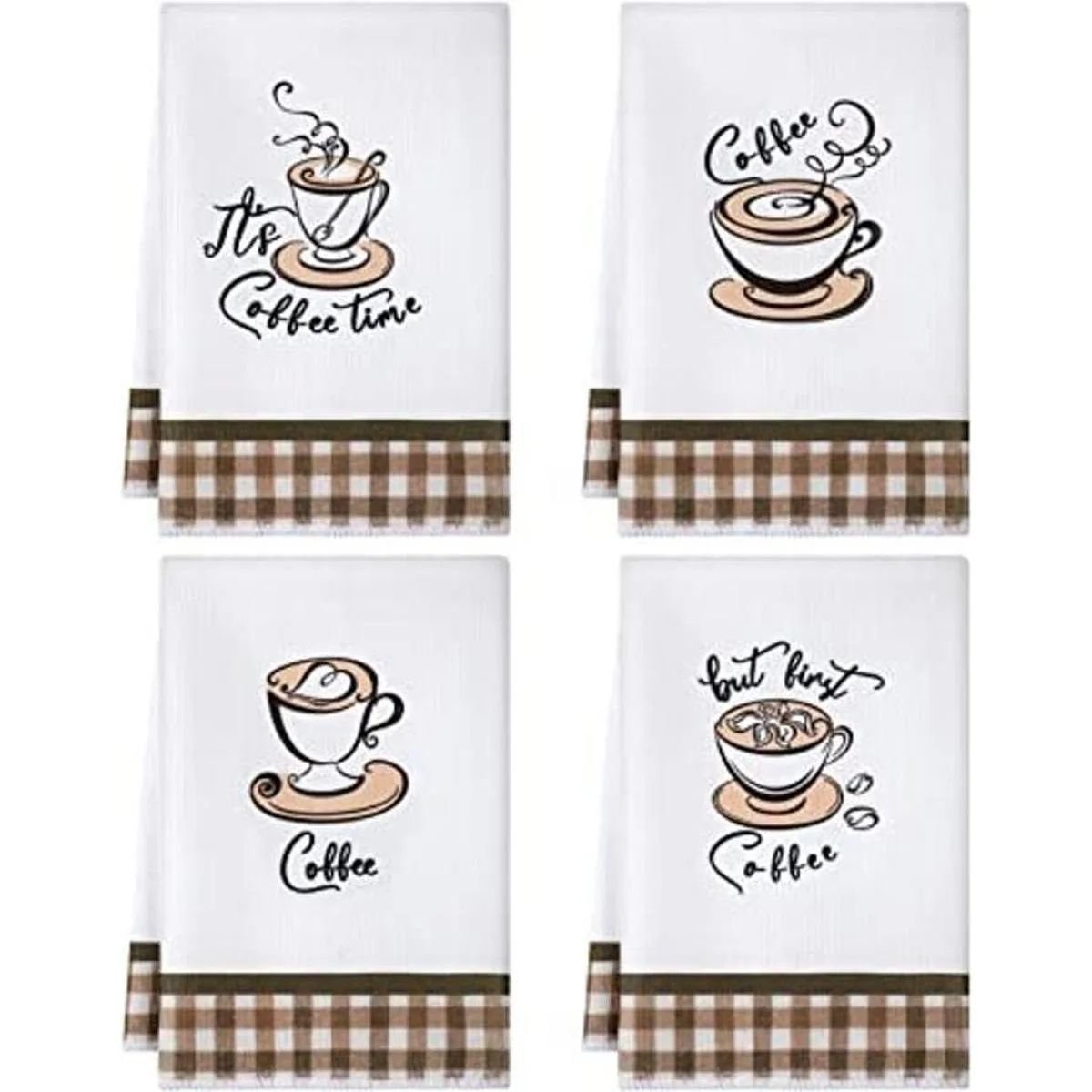 Rico en cantidad: el paquete contiene 4 toallas de cocina temáticas con diferentes diseños de patrones, hermosas y elegantes, y suficientes cantidades son suficientes para satisfacer tu uso diario y demandas de reemplazo, también ideal para decoración del hogar