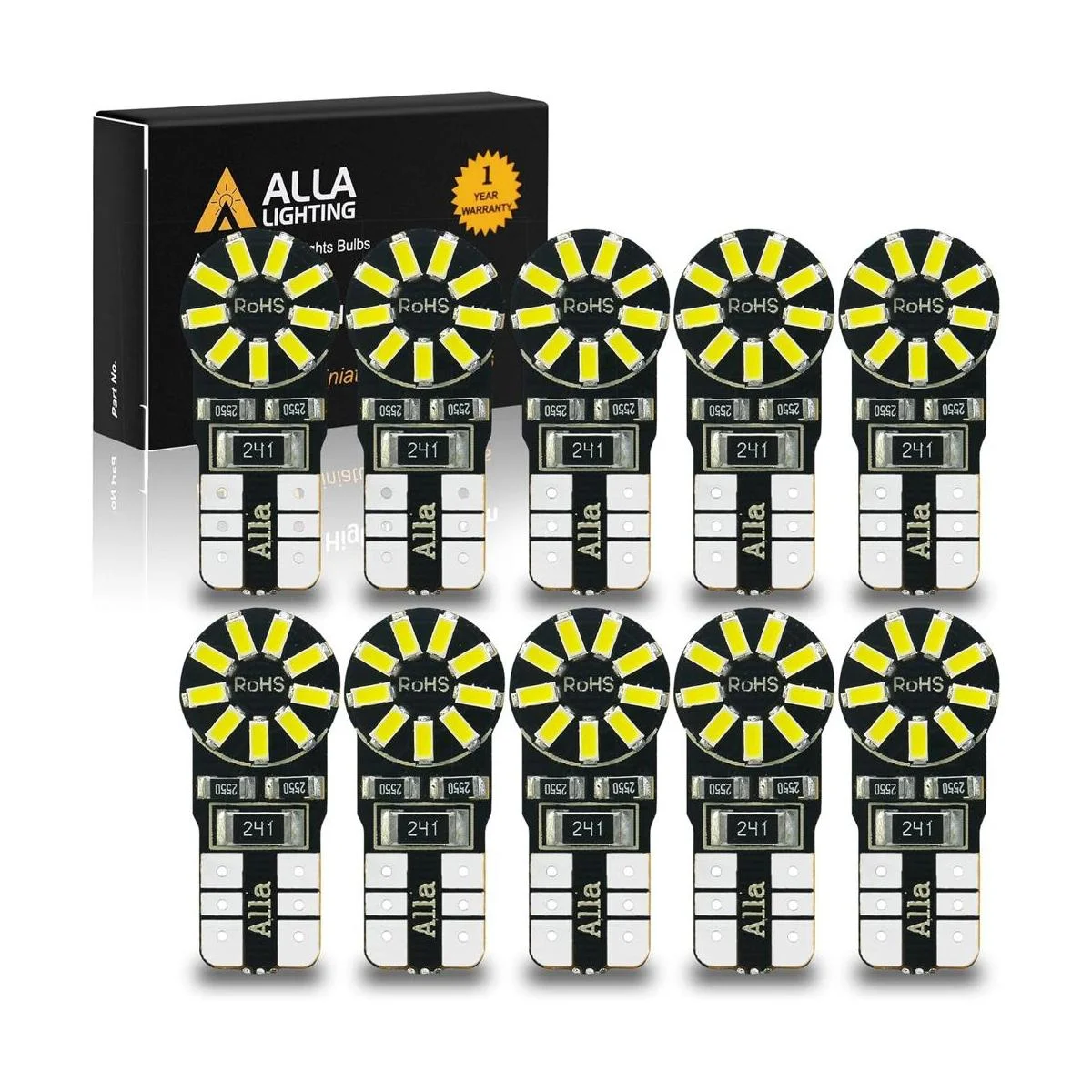 4 unidades Alla Lighting T10 Wedge 194 168 2825 W5W CANBU Bombillas de luz LED sin errores, blanco brillante, alta potencia 3014 18SMD.