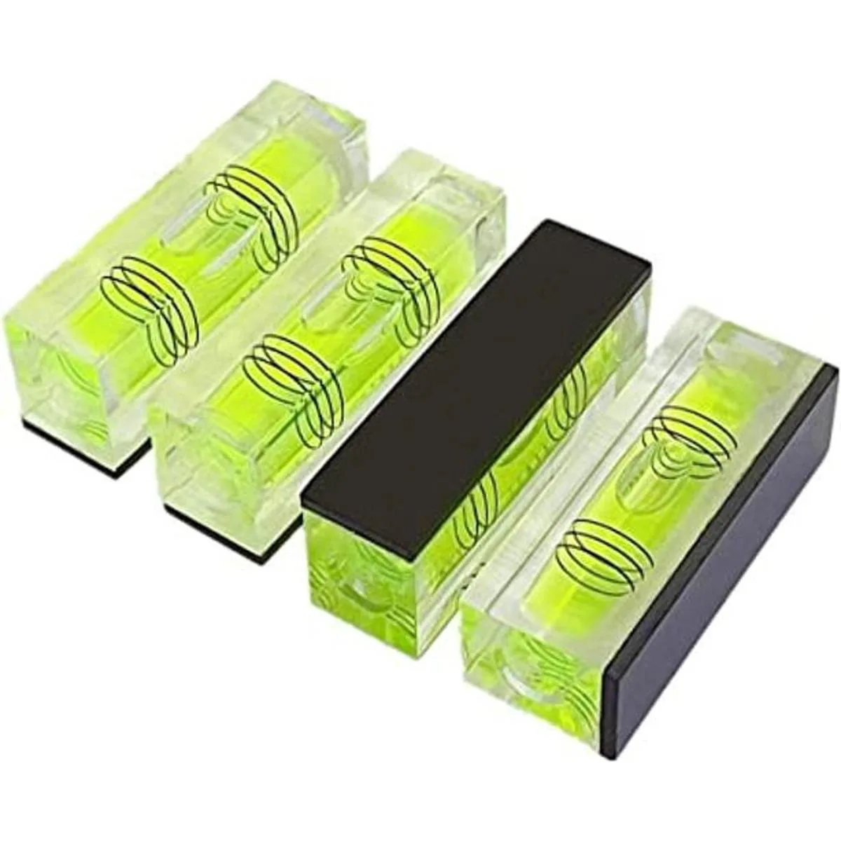 4 unidades de burbujas magnéticas de alta precisión de 2.047 x 0.591 x 0.787 in, niveles horizontales de tres líneas, mini niveles cuadrados de burbujas para colgar fotos, caravana, remolque de viaje