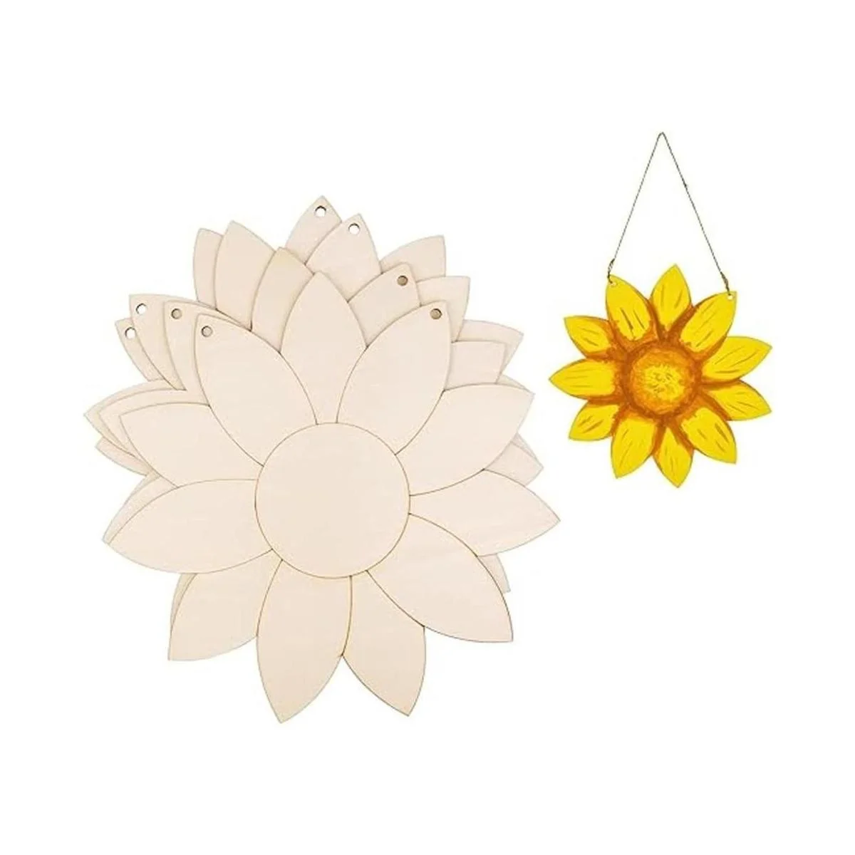 El paquete incluye 4 piezas de decoración de madera para colgar en forma de girasol con cuerdas para colgar, disfruta de la pintura de madera divertida con tu familia, suficiente para usar en la vida diaria.
