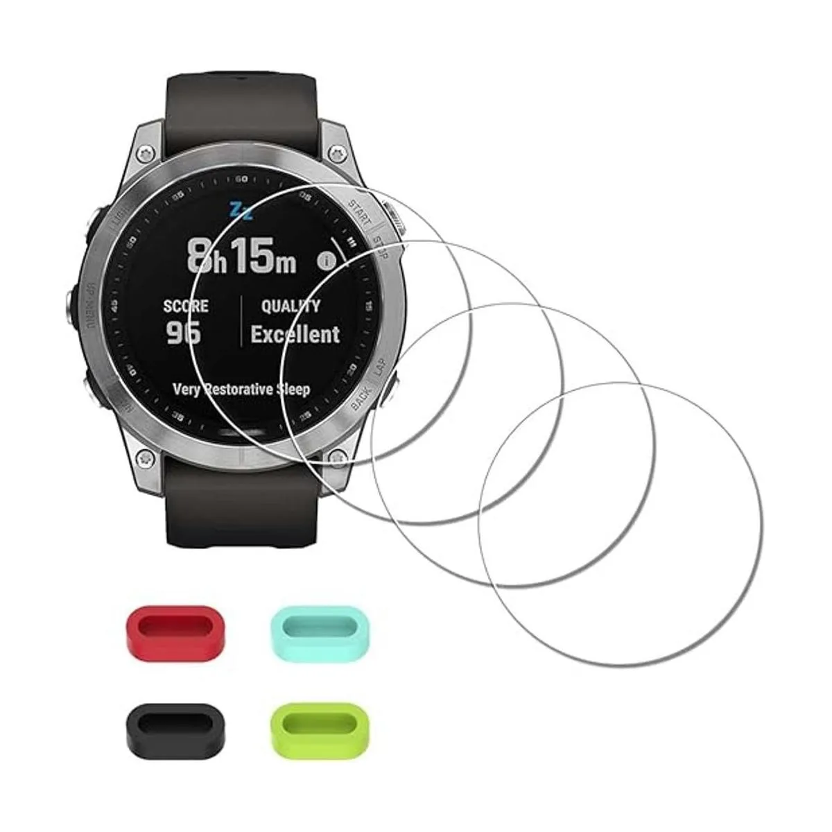 4 unidades Protector de pantalla para Garmin fenix 77 Sapphire Solar Watch tapones de silicona antipolvo, vidrio templado iDaPro antiarañazos, sin burbujas