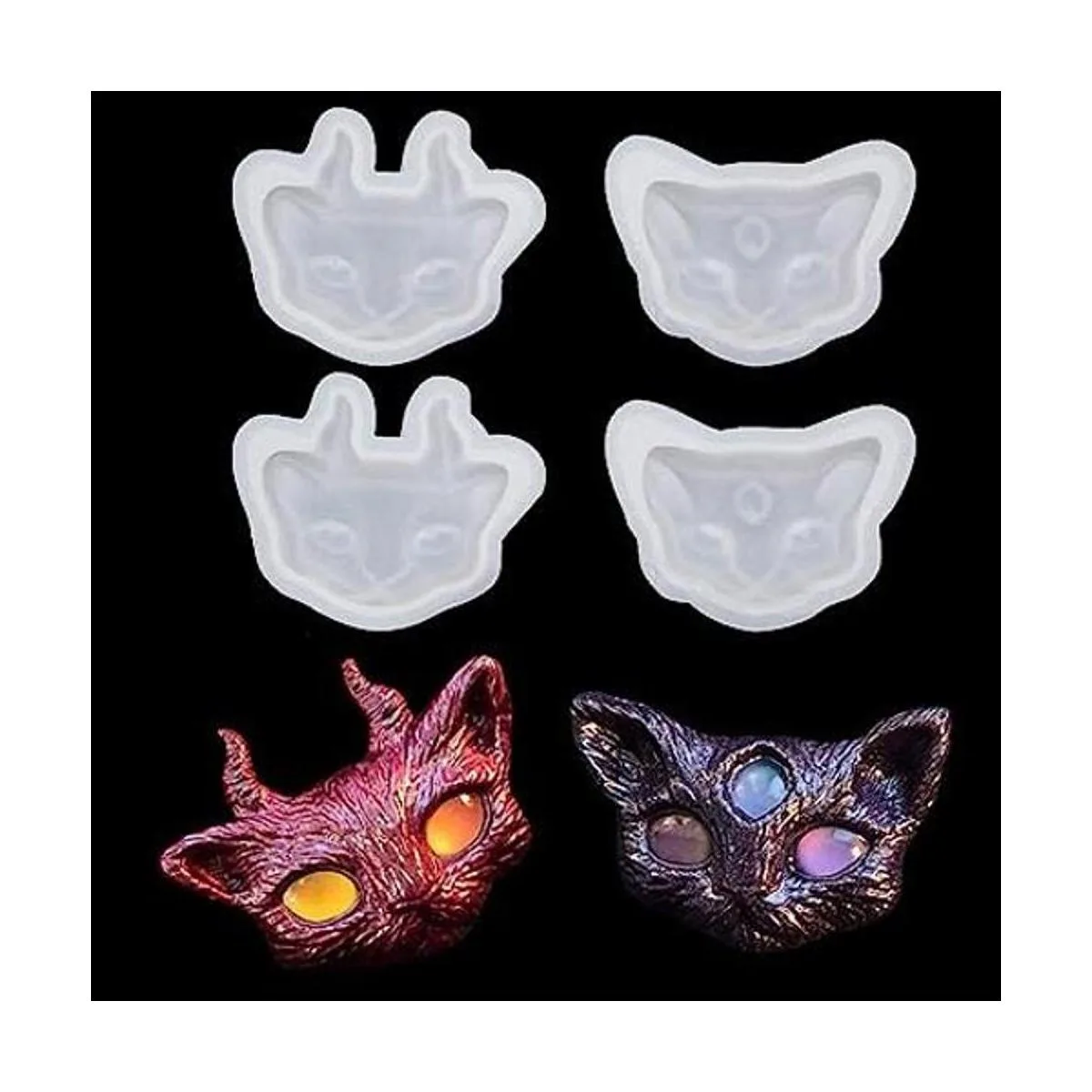 4 unidsset pequeño gato resina de silicona epoxi moldes de cristal rebordear joyería DIY diablo gato cabeza con tres ojos y cuernos collar colgante molde de fundición mano artesanía resina moldes fondant moldes