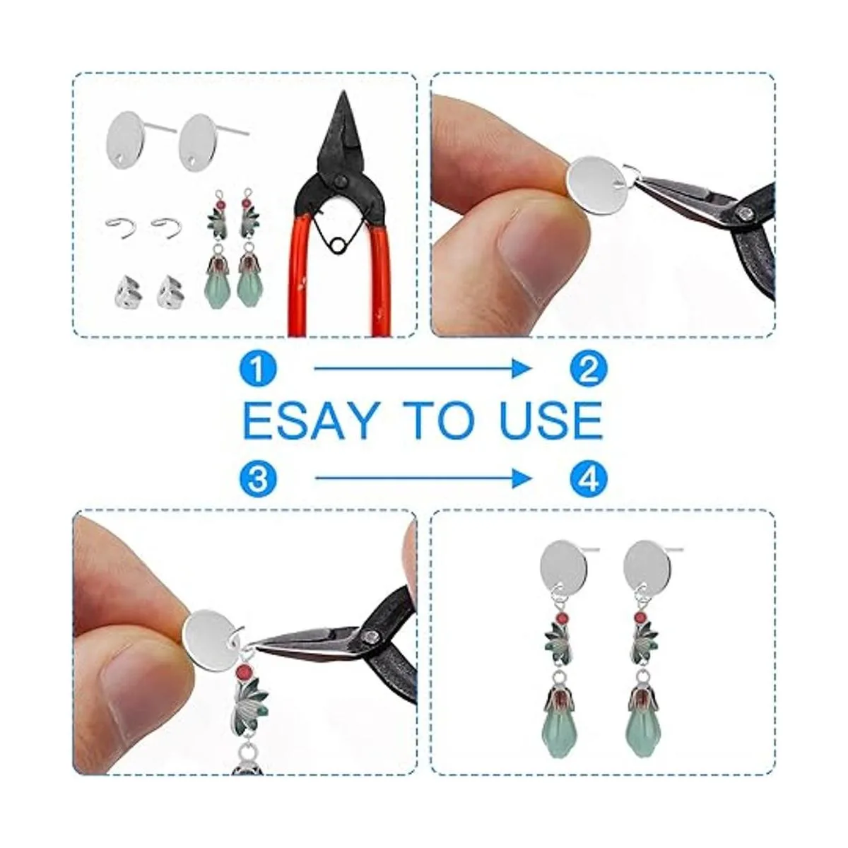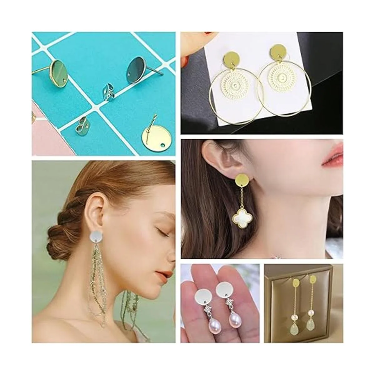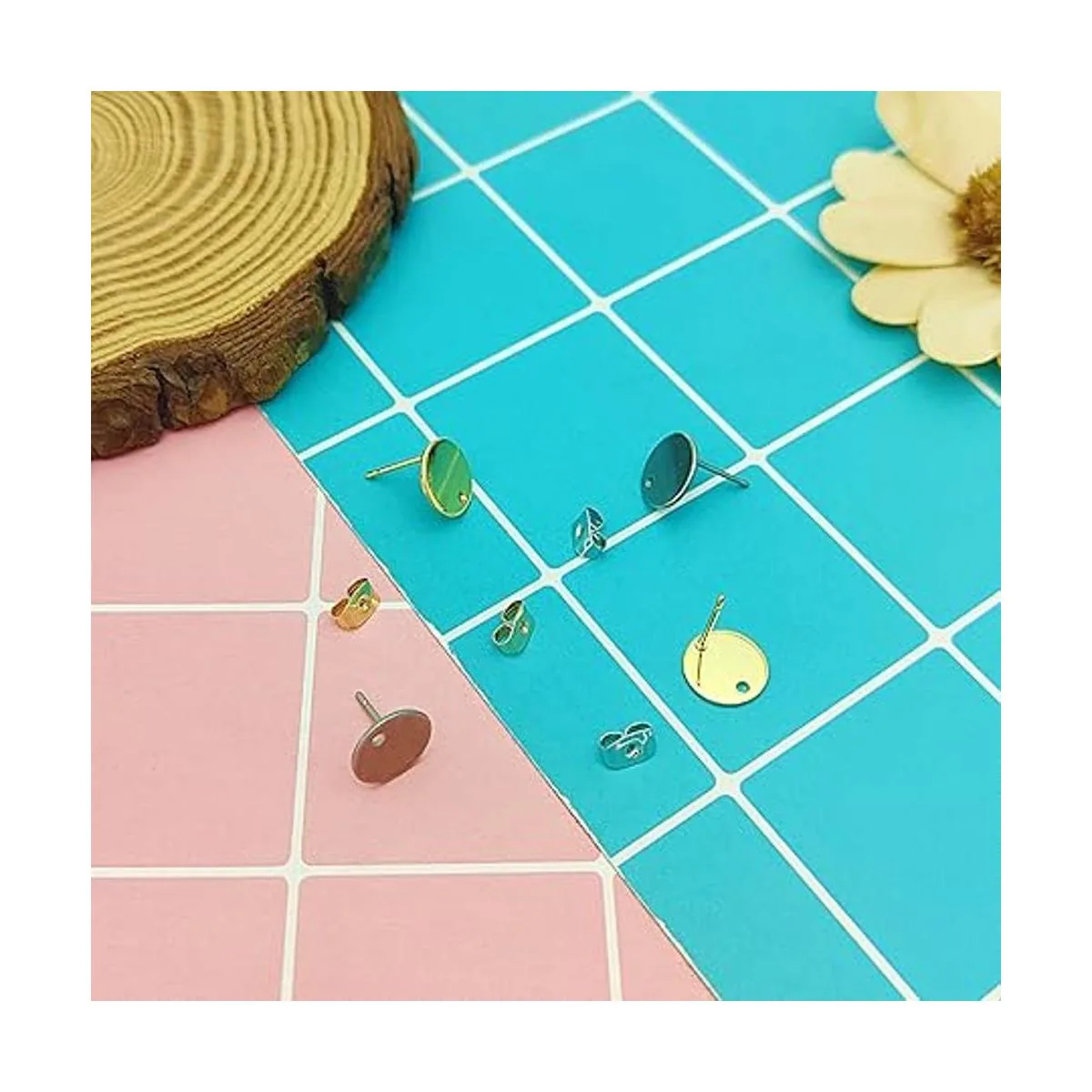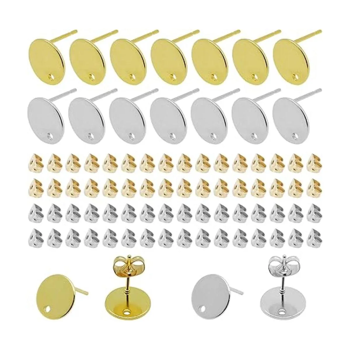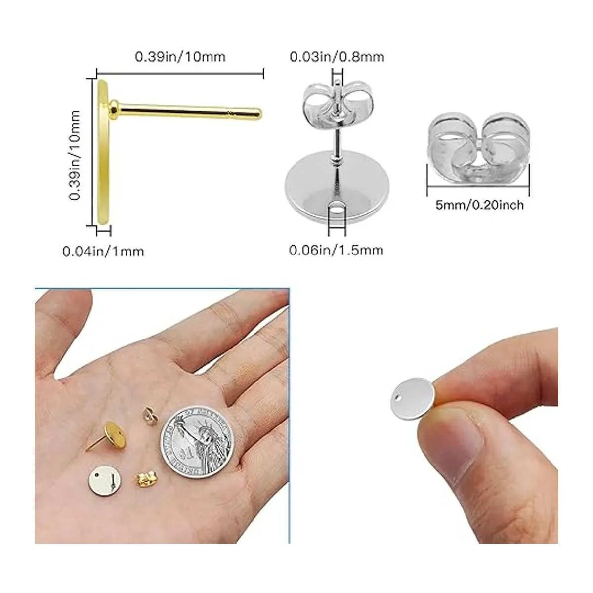 40 aretes redondos hipoalergénicos de 0.39 pulgadas 0.394 in en blanco, aretes de acero inoxidable con 200 piezas de aretes de mariposa para hacer joyas