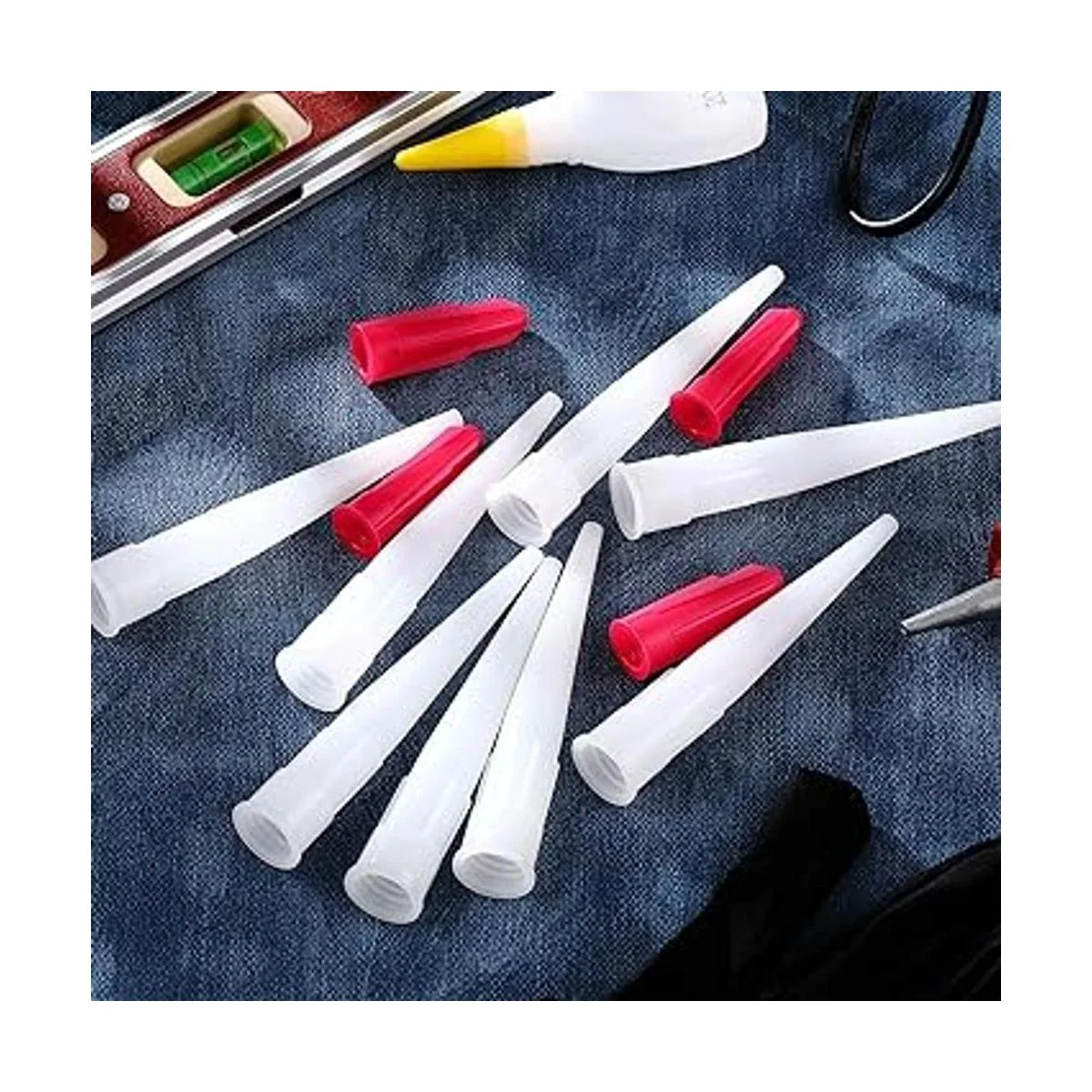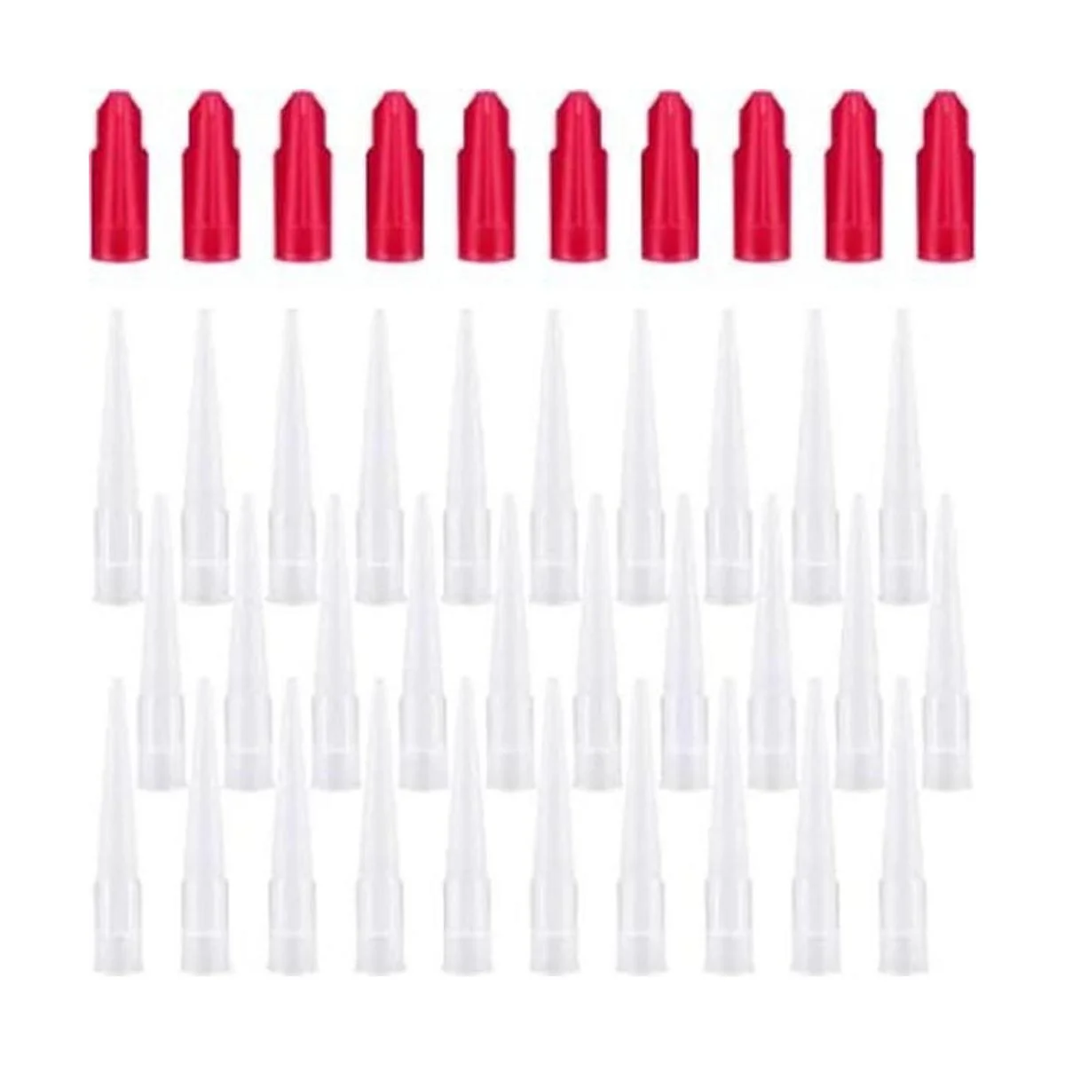 Suministros suficientes: un paquete incluye 30 boquillas de calafateo y 10 cubiertas de ahorro de calafateo rojo, un total de 40 piezas, cantidad suficiente y combinación completa que pueden satisfacer tus necesidades diarias y reemplazo