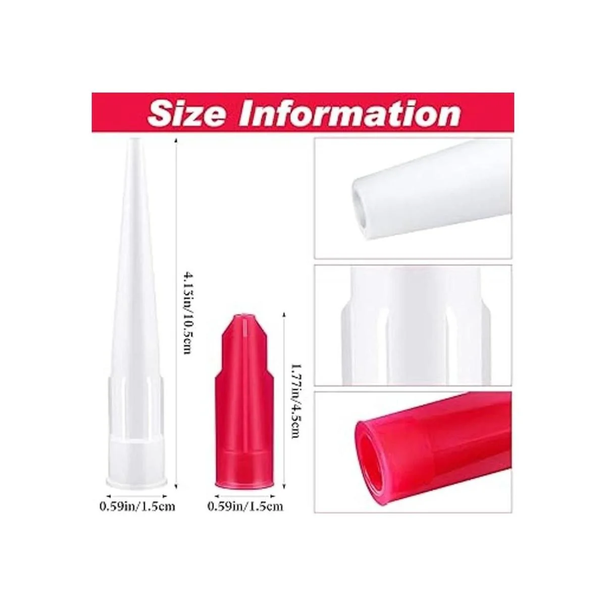 Amplios usos: la boquilla de tubo sellador mide aproximadamente 4.13 pulgadas de longitud, 0.59 pulgadas de diámetro, que es muy adecuada para cocina, baño, tanque, puerta, fregadero, acabado de relleno de juntas y más, y también se puede aplicar en el sector de la construcción e industrial