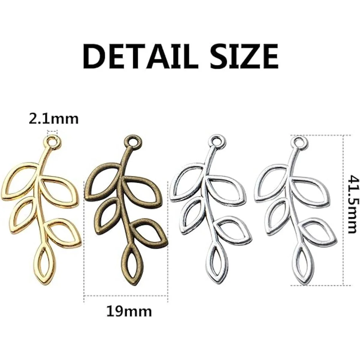 Tamaño adecuado: como se puede ver en la imagen, el tamaño de los colgantes de hoja es de 1.634 in de largo, 0.748 in de ancho, el agujero del colgante: 0.083 in. Los abalorios en el tamaño adecuado serán adecuados para que puedas aplicar en varios proyectos de bricolaje.