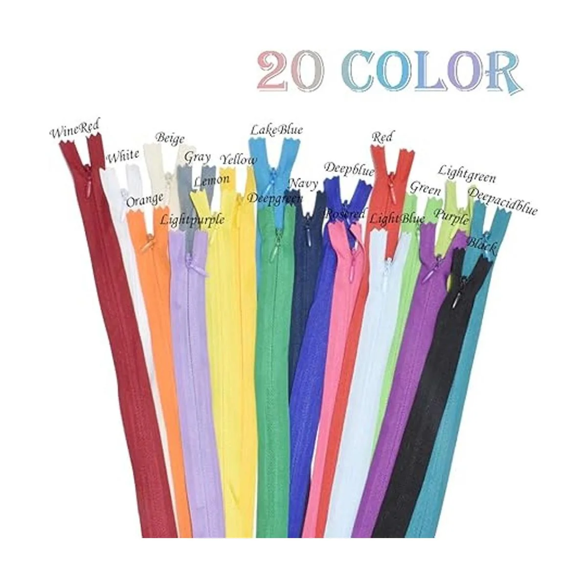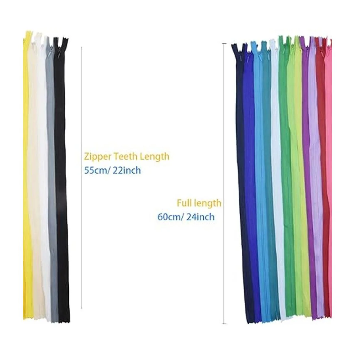 Cantidad: 40 cremalleras invisibles de colores mixtos de 22 pulgadas.