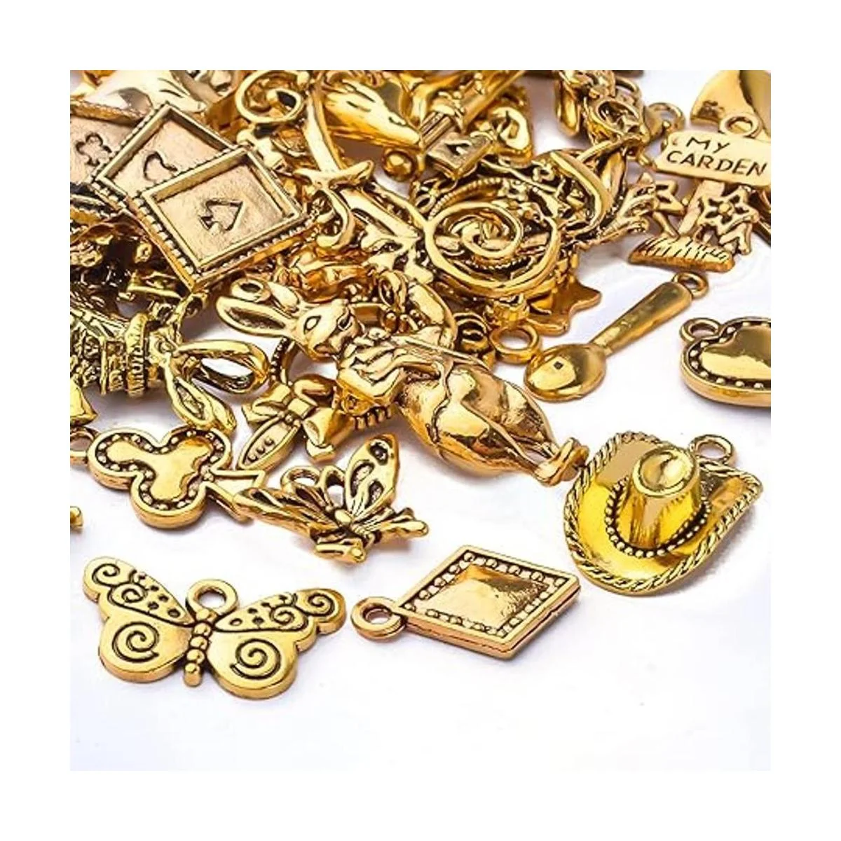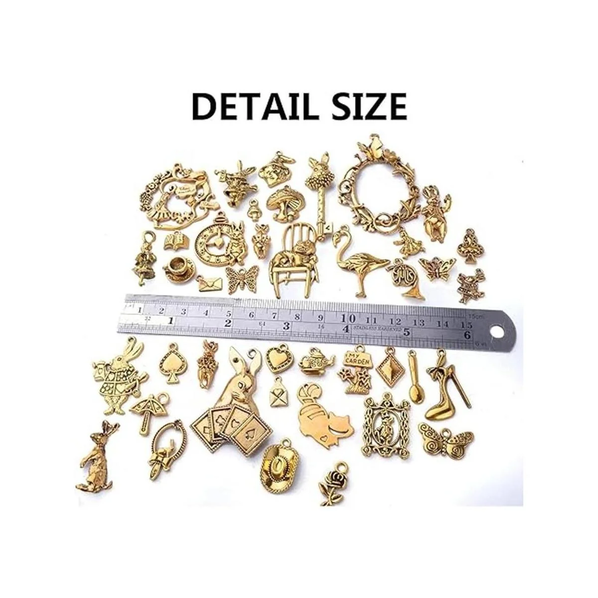 El paquete incluye: hay 40 dijes de Alicia de oro antiguo en el paquete, cantidad suficiente y diferentes estilos te proporcionarán más opciones a juego para diversas necesidades de trajes en la vida diaria