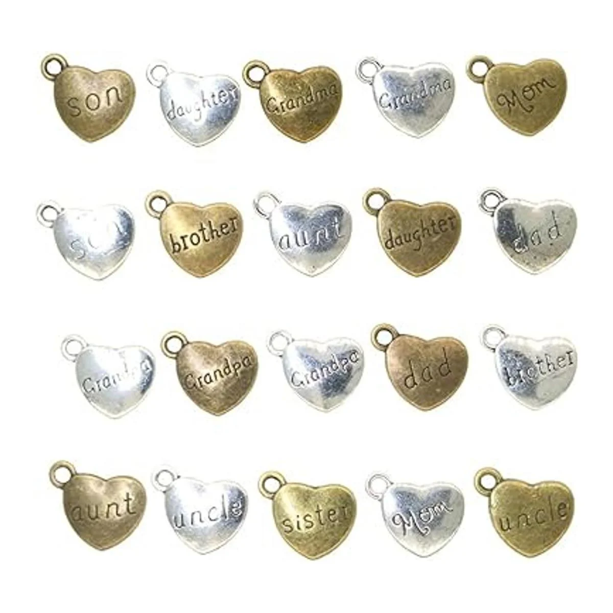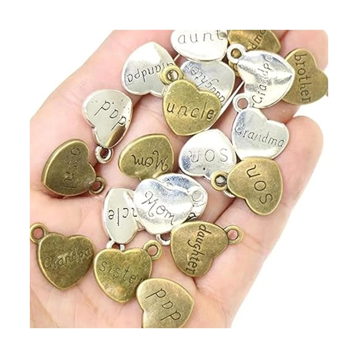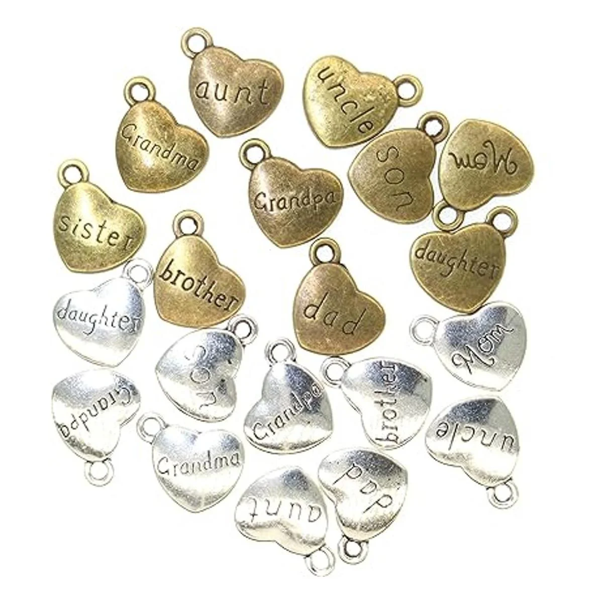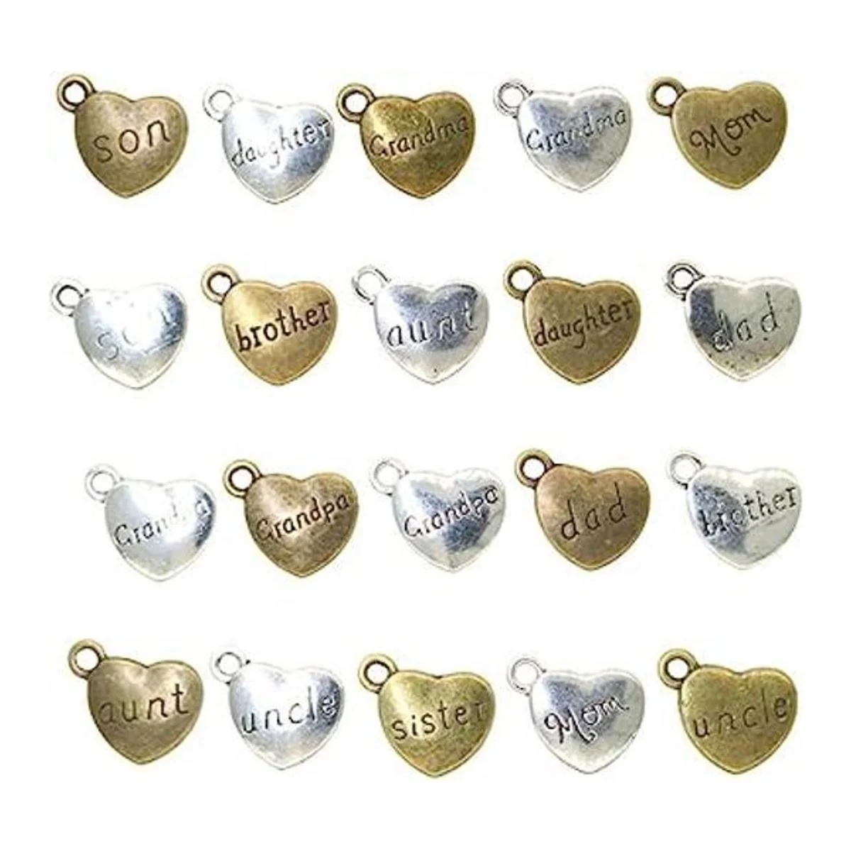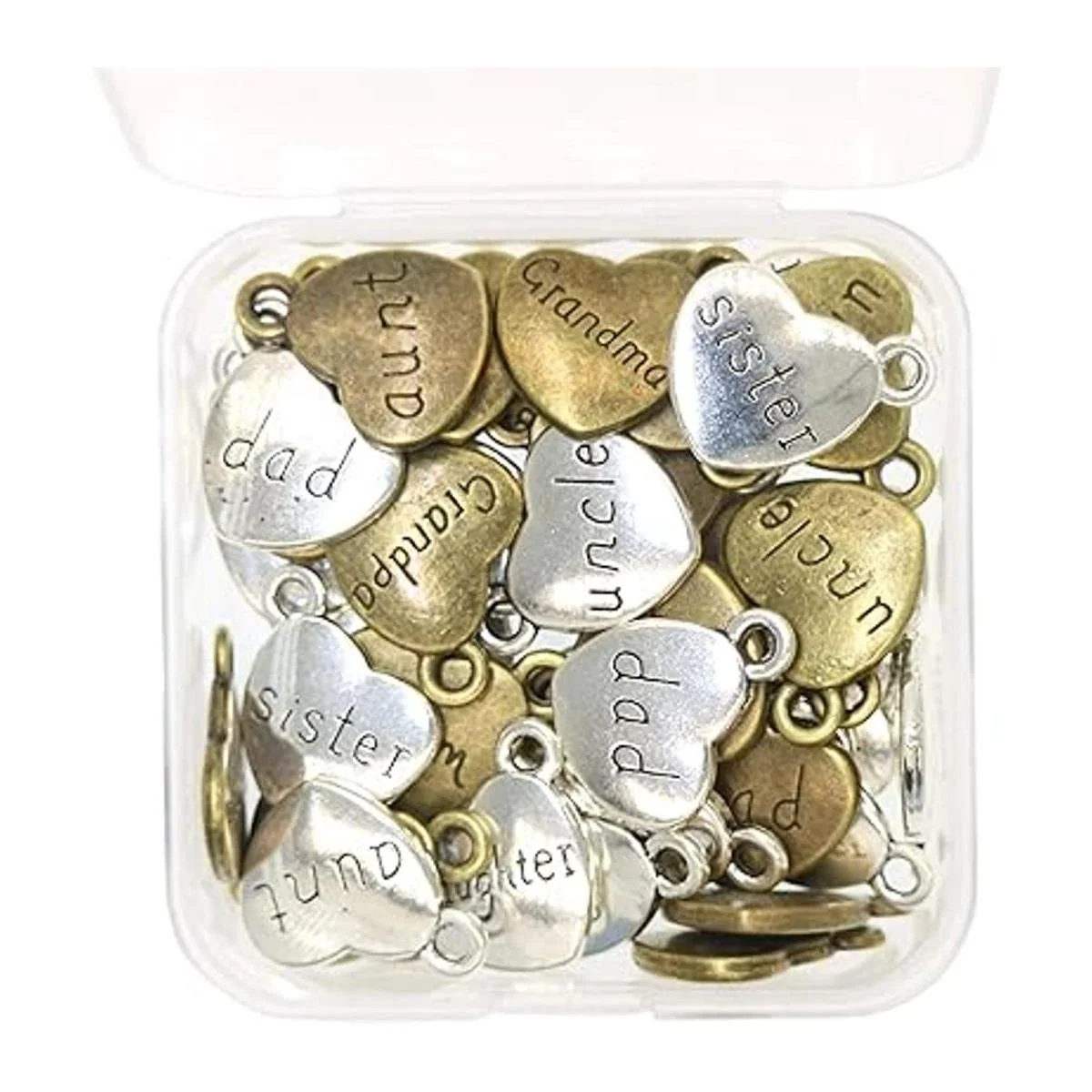 40 dijes de letras familiares mixtas para bricolaje, collares, pulseras, aretes, joyería y búsqueda de colgantes, Metal, No
