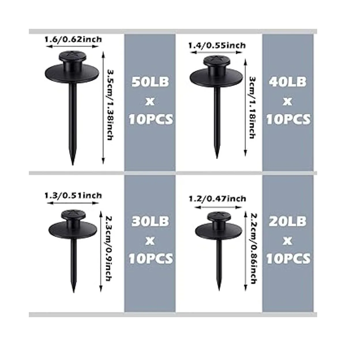 Diversos rodamientos de peso para elegir: recibirás 40 tachuelas de marco de fotos en 4 rodamientos diferentes, a saber, 20 libras, 30 libras, 40 libras, 50 libras, que te permiten elegir diferentes clavos de rodamiento de acuerdo con las necesidades de colgar imágenes, lo que te brinda una gran comodidad; suficiente cantidad y diferentes rodamientos pueden satisfacer tus diversas necesidades