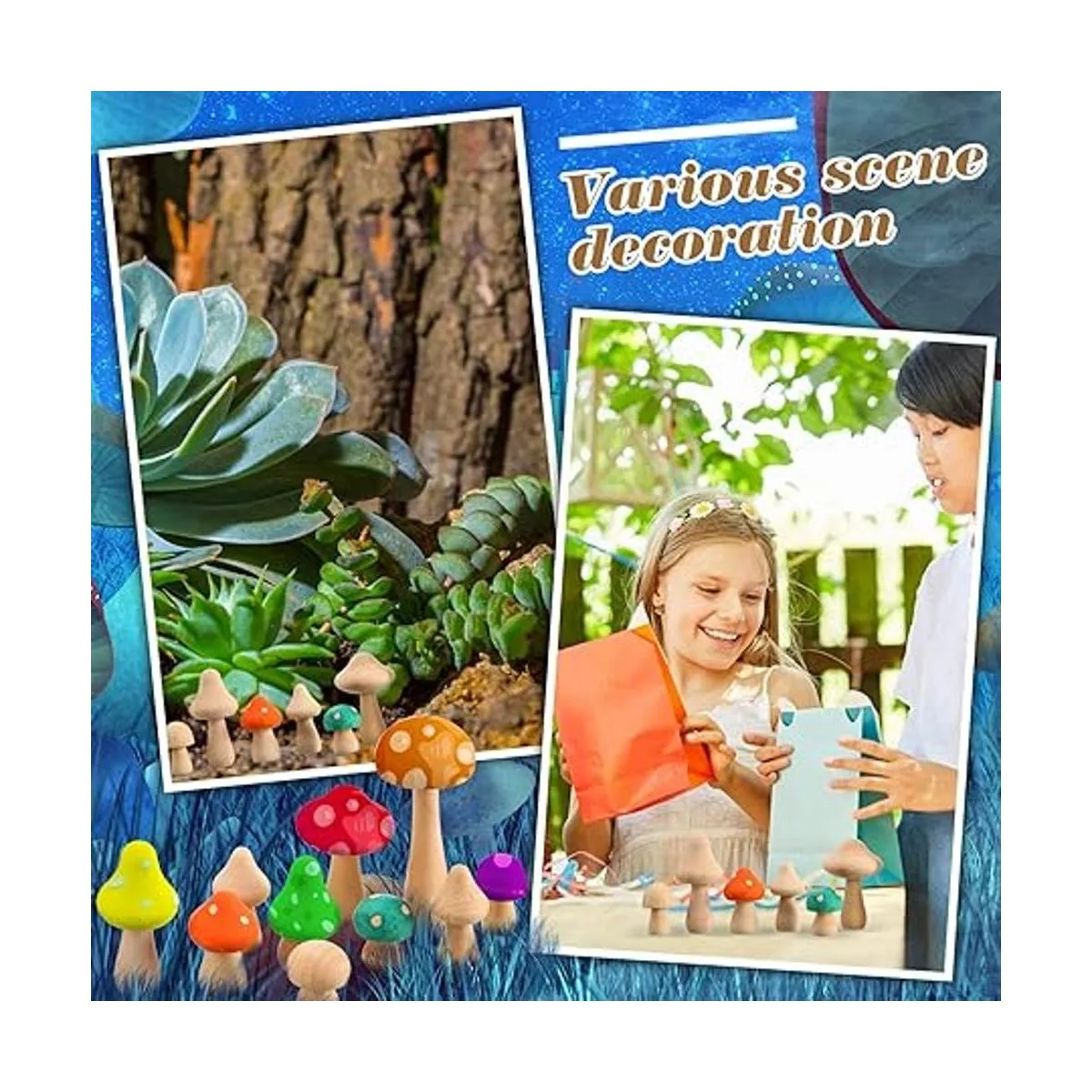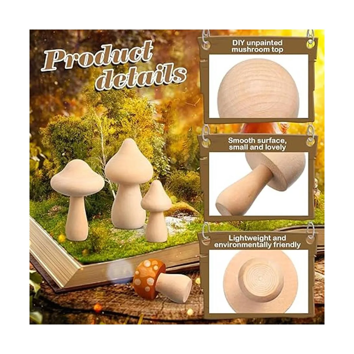 Adecuado para bricolaje: puedes utilizar los mini hongos de madera para hacer manualidades con tu familia o amigos, disfrutando de la diversión del bricolaje y mejorando la relación; también puedes mejorar la capacidad hecha a mano y obtener una sensación de logro en el proceso de bricolaje
