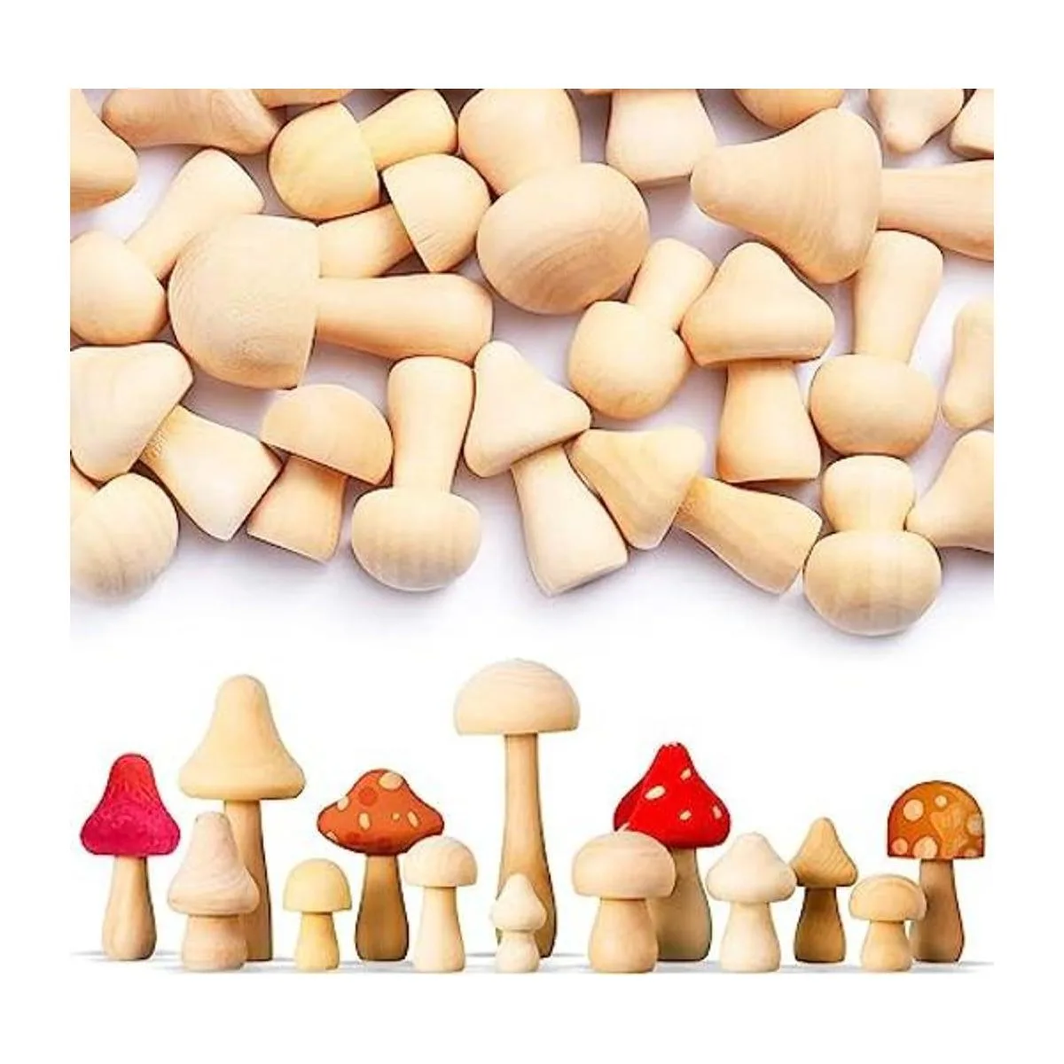 40 piezas de hongos de madera natural sin acabar, mini hongos de madera de varios tamaños, figuras de hongos de madera para artes y manualidades, proyectos de bricolaje, adornos de pintura, color para el hogar, estanterías de escritorio, decoración