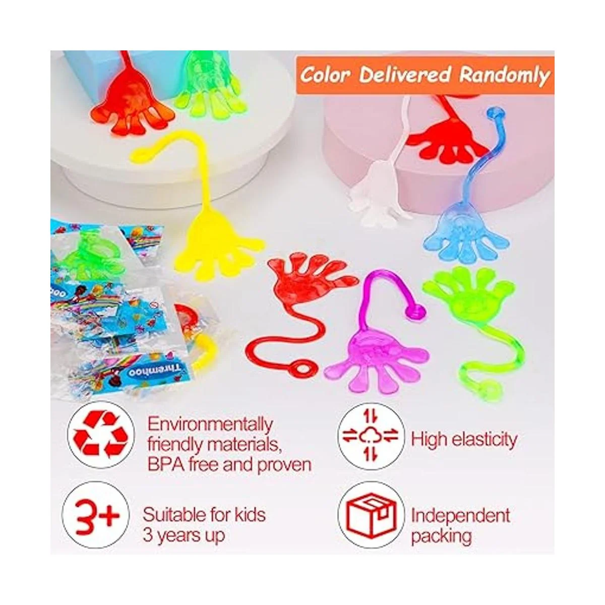 Manos adhesivas para niños de alta calidad Nuestro juego de juguetes para dedos pegajosos para niños está hecho de material no tóxico. Sin residuos de color para un uso prolongado, gran juguete pequeño a granel para niños.
