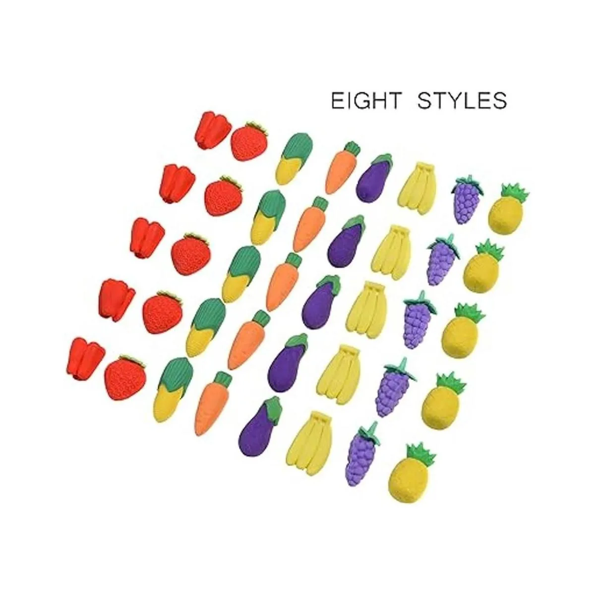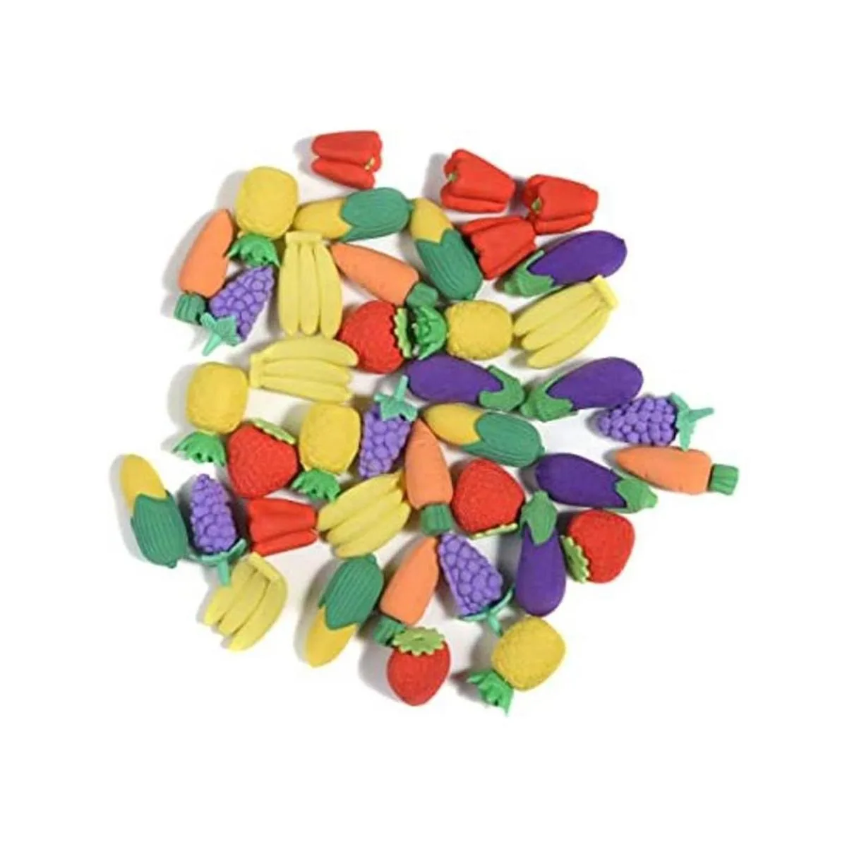 Paquete de 40 gomas de borrar simples frutas y verduras en forma realista y linda