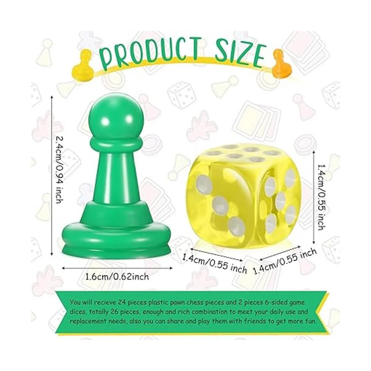 Abundante calidad: este juego de piezas de juego y dados viene con 40 piezas de ajedrez y 4 dados de juego, suficientes piezas de peón y dados pueden satisfacer tus necesidades diarias y reemplazo