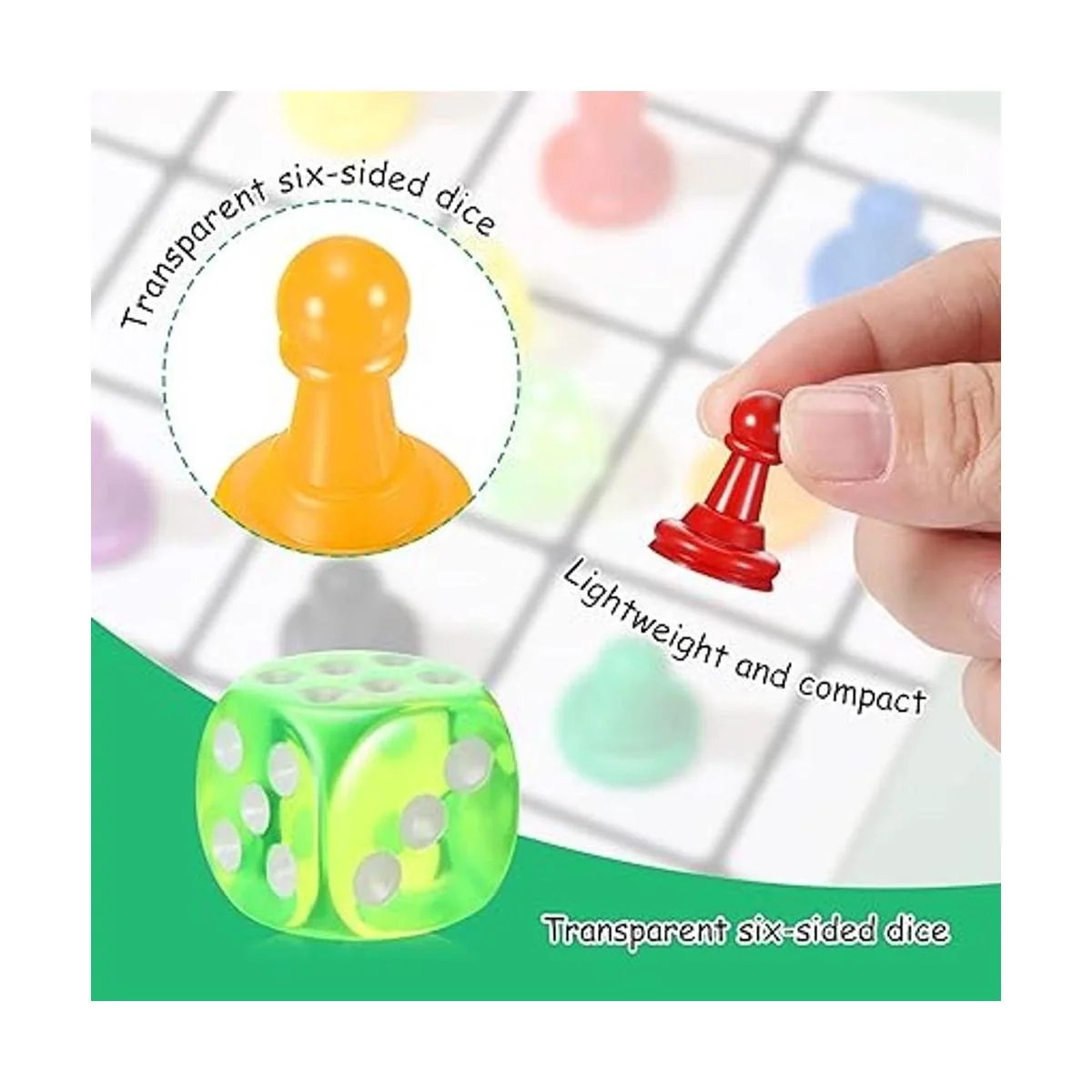 Material de calidad: este juego de mesa está principalmente hecho de plástico para una larga vida útil; los dados están hechos de plástico transparente para mayor durabilidad, disponible en 4 colores brillantes y sonidos nítidos