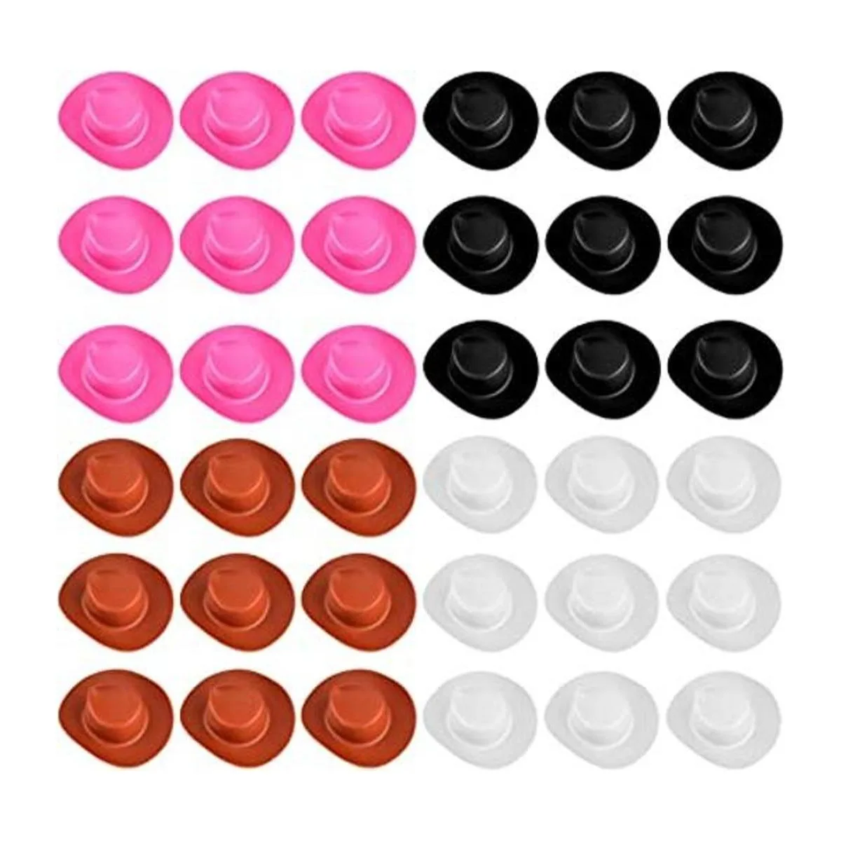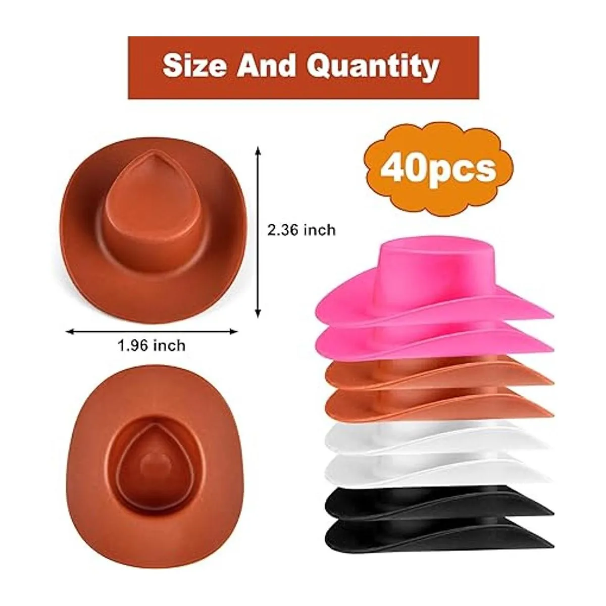 Mini sombreros de vaquero occidental de plástico: el paquete contiene mini sombreros de vaquero en 4 colores de rosa, marrón, blanco y negro, 10 para cada color, 40 en total; diferentes colores y cantidades suficientes pueden satisfacer tus necesidades decorativas, también puedes compartir con tu familia y amigos