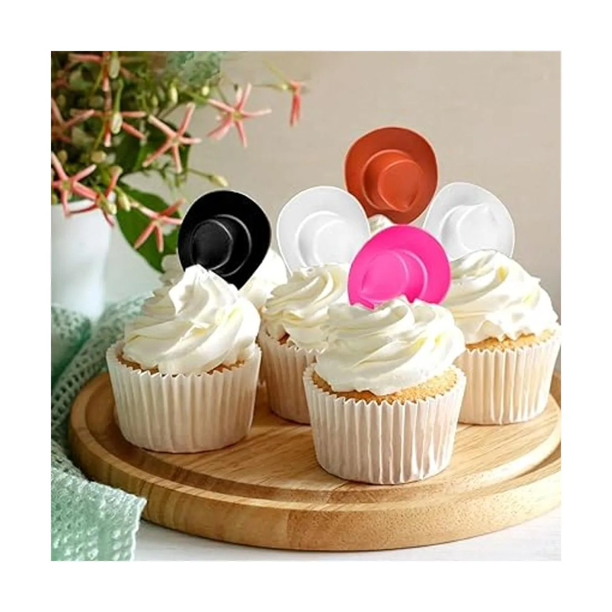 40 piezas de plástico mini sombreros de vaquero occidental, sombreros de vaquera en miniatura, lindos juguetes de muñeca, accesorios de fiesta para decoración de casa de muñecas rosa, marrón, blanco, negro