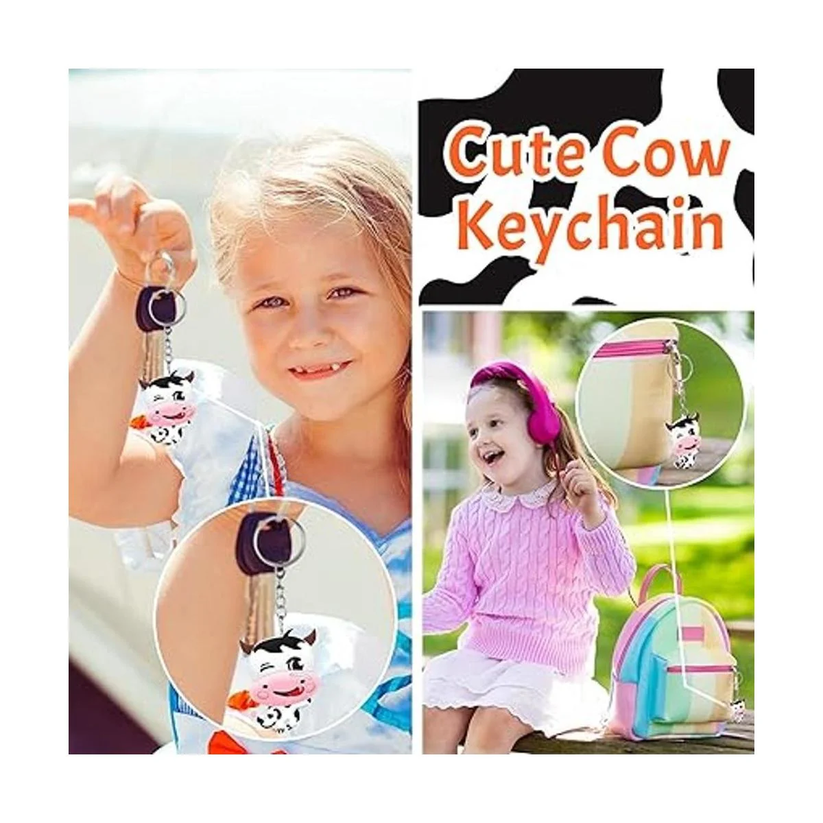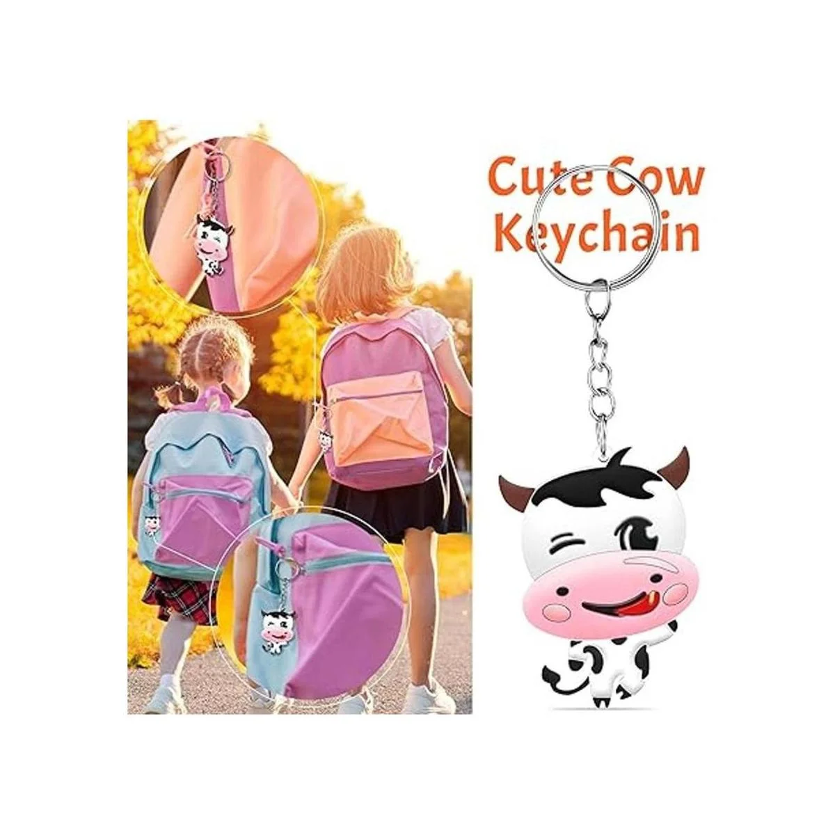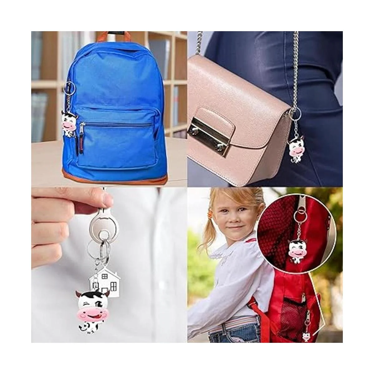Tamaño adecuado: cada llavero de vaca mide aproximadamente 1.8 x 1.4 pulgadas, lo que es adecuado para la mayoría de las personas, puedes cambiar y reemplazar de acuerdo a tus propios intereses y preferencias, también puedes usarlo como un bonito colgante para tus mochilas, bolsos o bolsos