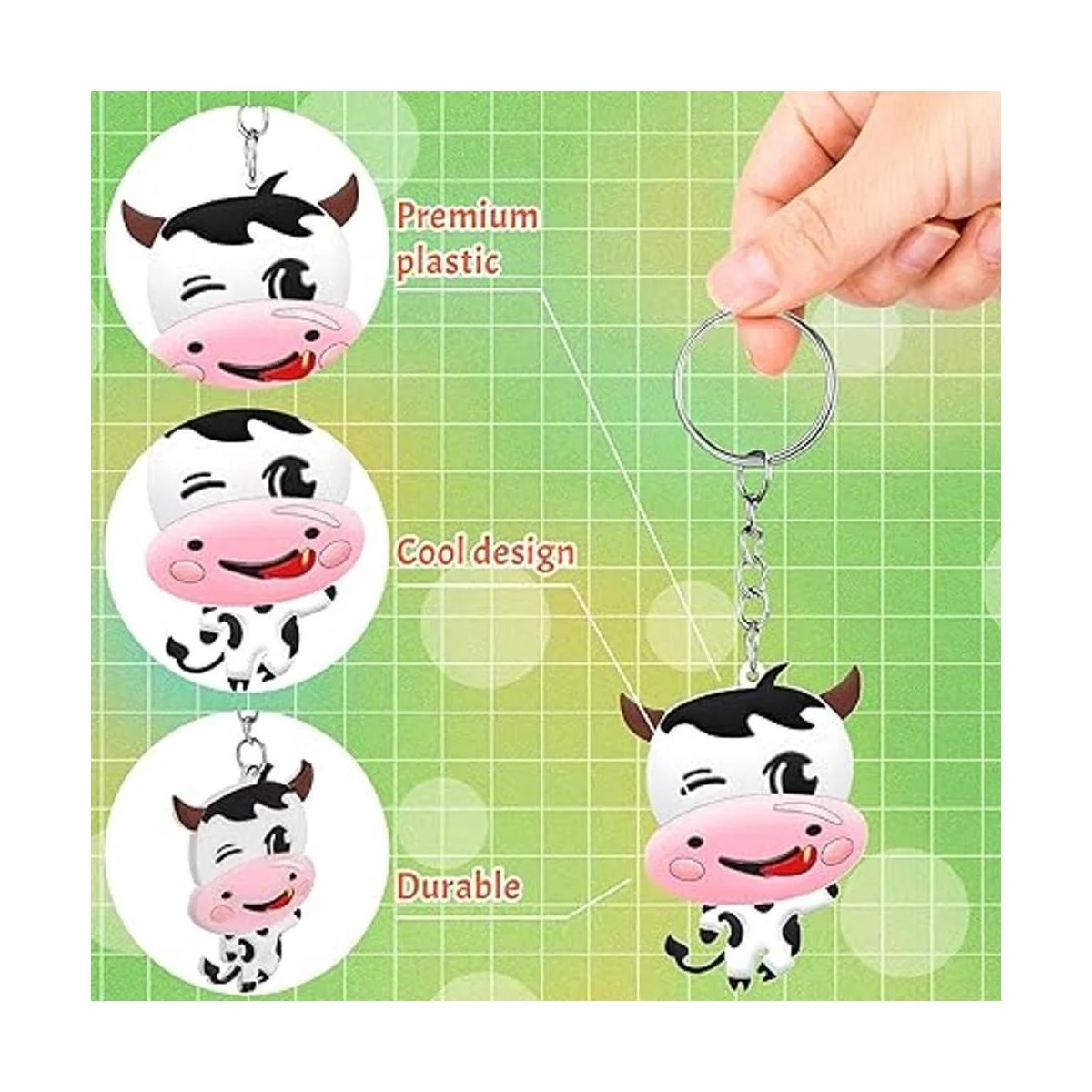 Diseño llamativo: estos llaveros de animales de granja están diseñados con bonitos patrones de vaca, que se ven interesantes y adorables para atraer la atención de la mayoría de las personas si los llevas contigo, manteniendo un buen humor todos los días