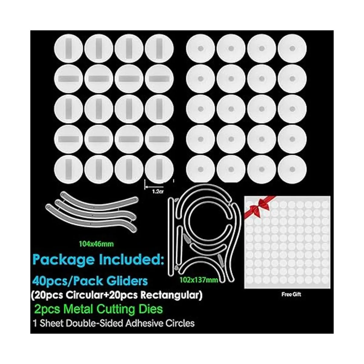 El paquete incluye: 40 planeadores, 100 hojas de círculos adhesivos de doble cara, 2 troqueles de corte de metal irregulares con forma de rayado