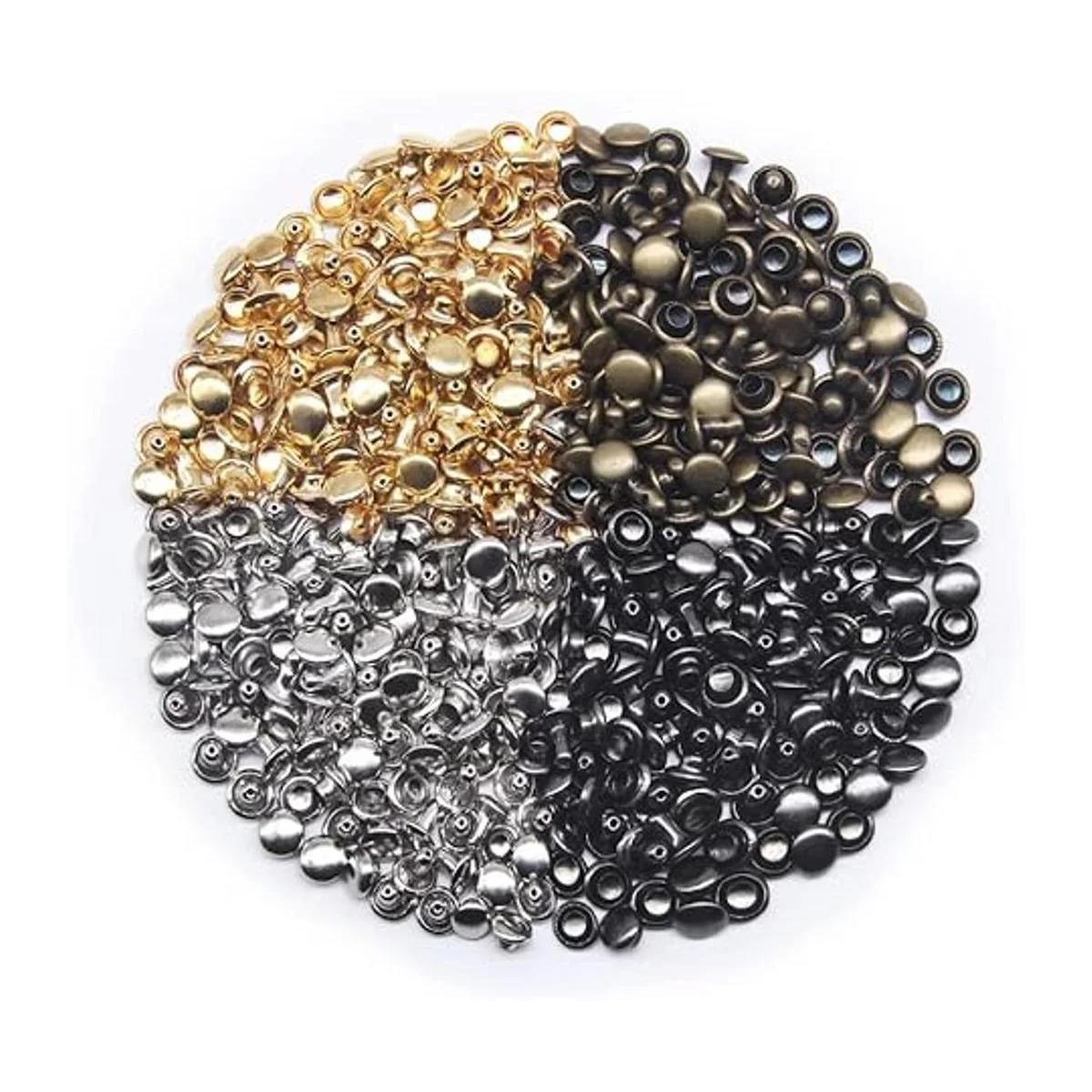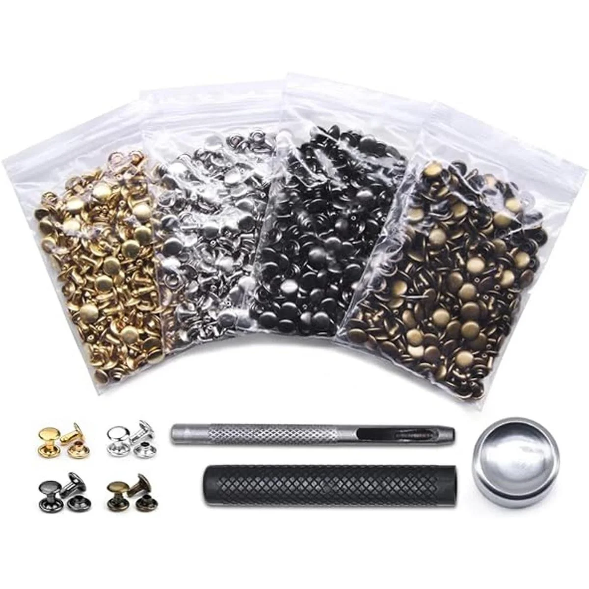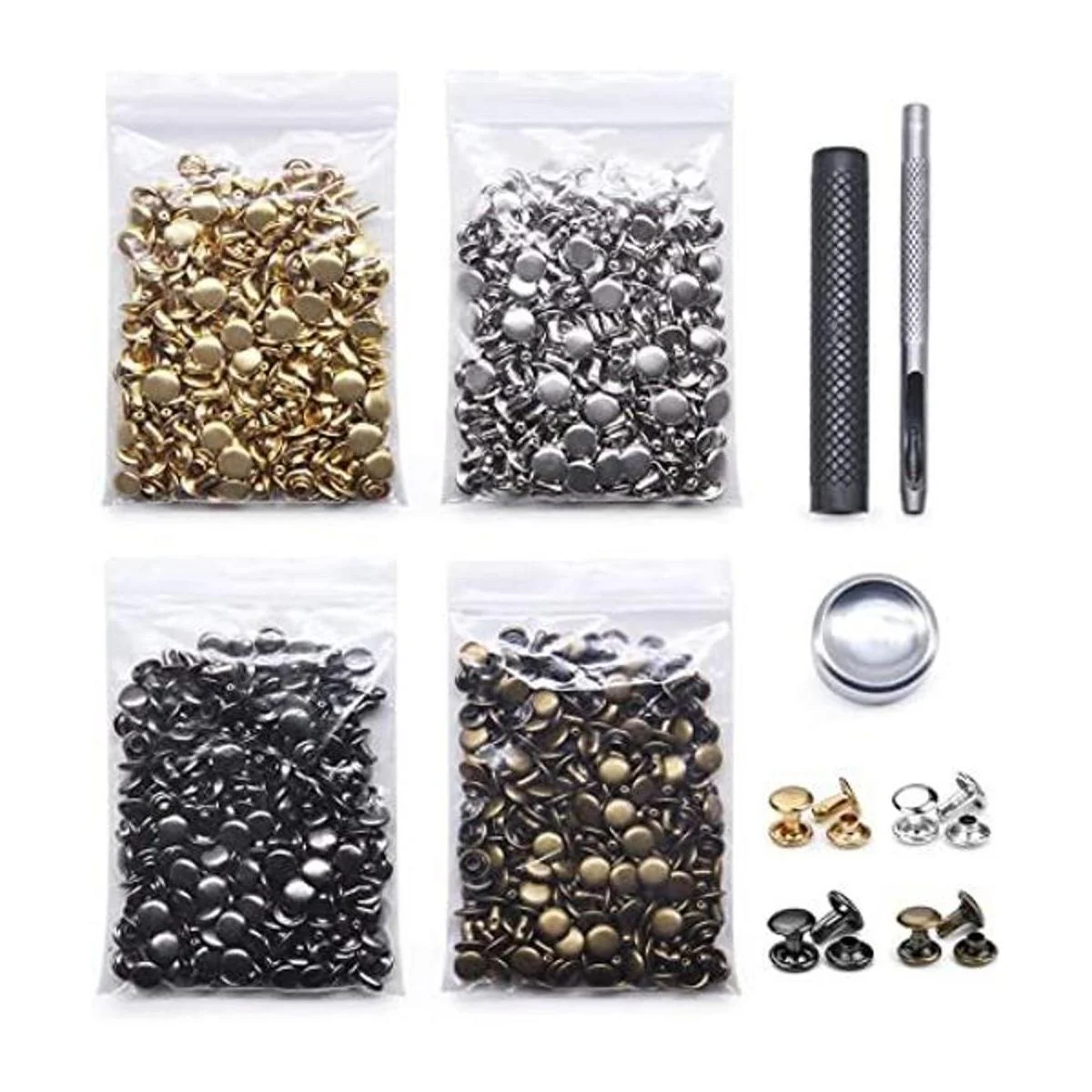 400 juegos de remaches de cuero, remaches tubulares de doble tapa, 4 colores de latón con herramientas de fijación para manualidades de cuero, ropa, zapatos, bolsas, cinturones, decoración de reparación