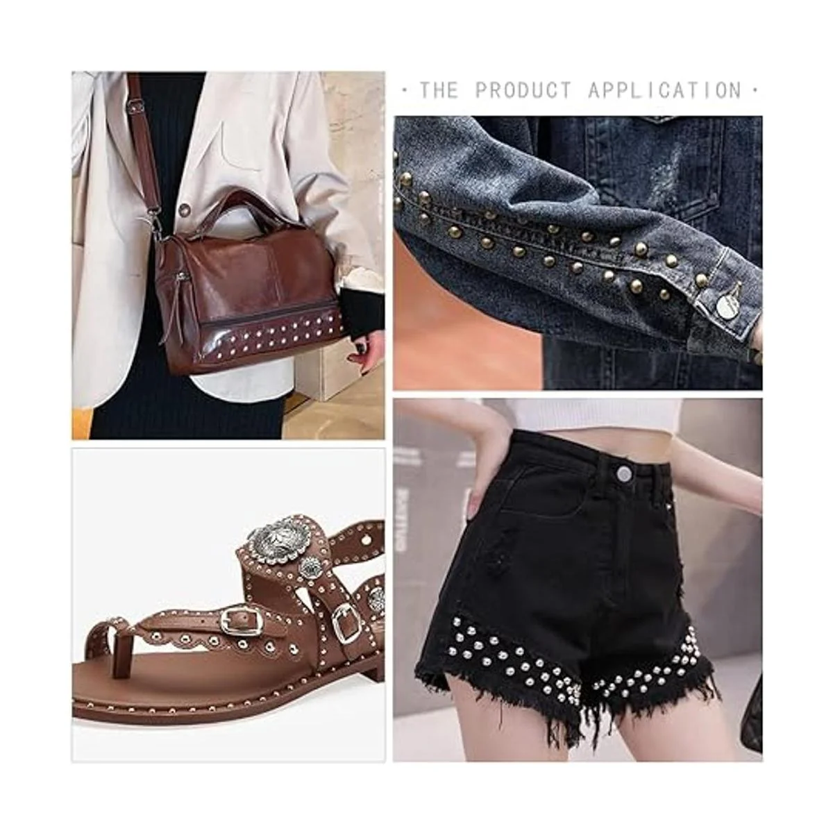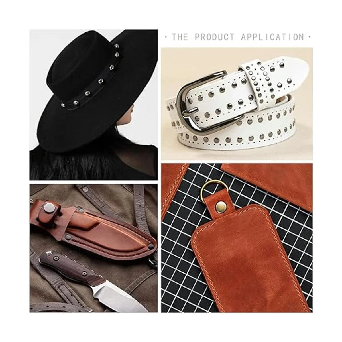 Amplia aplicación: estos remaches de cuero son accesorios útiles que se pueden aplicar para manualidades de cuero, reparación y decoración de pulseras, sombreros, jeans, cortavientos, cinturones, zapatos, sandalias, chaquetas de plumón, bolsos, etc