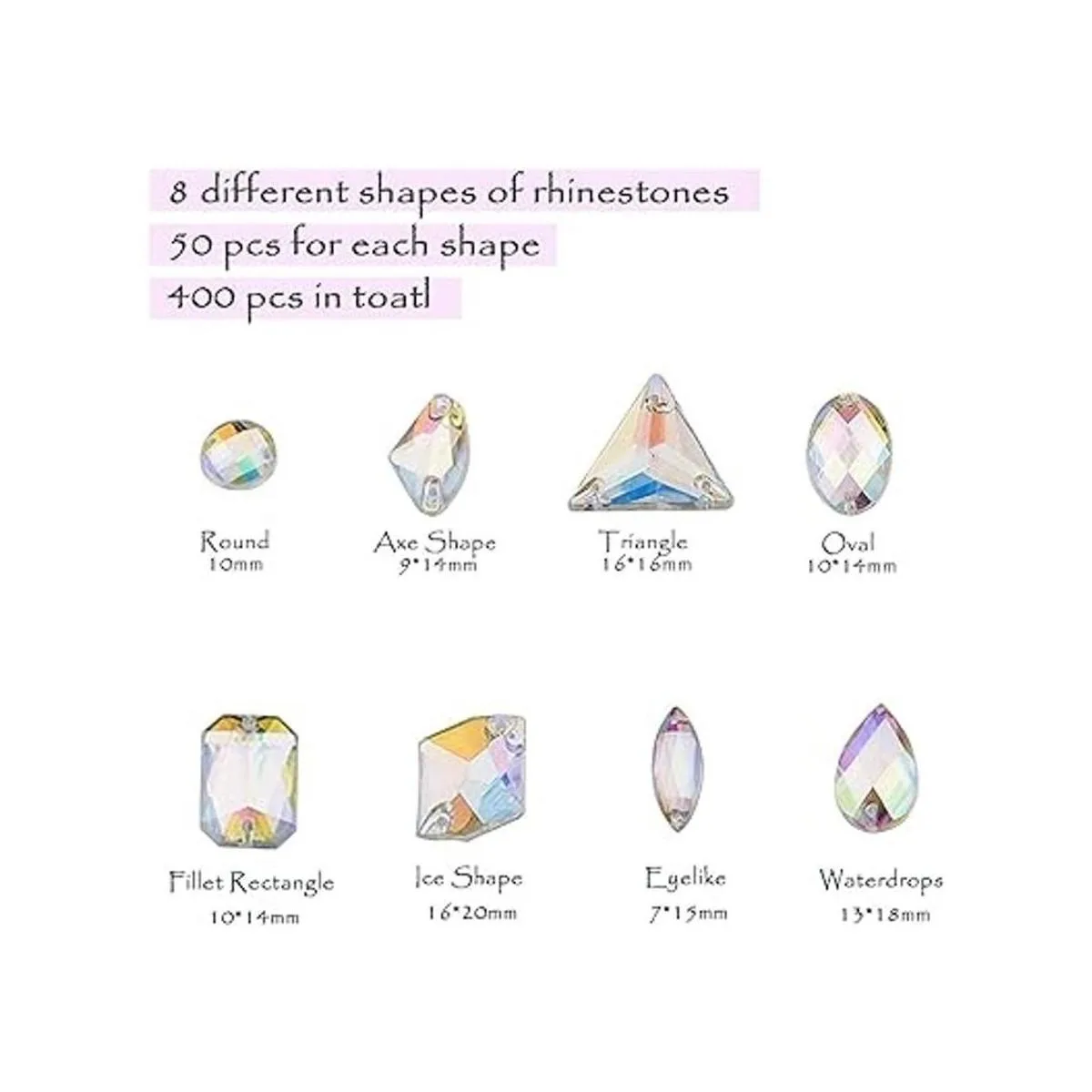 400 piezas de gemas grandes para coser en total, incluye 8 formas diferentes y 50 piezas para cada forma.