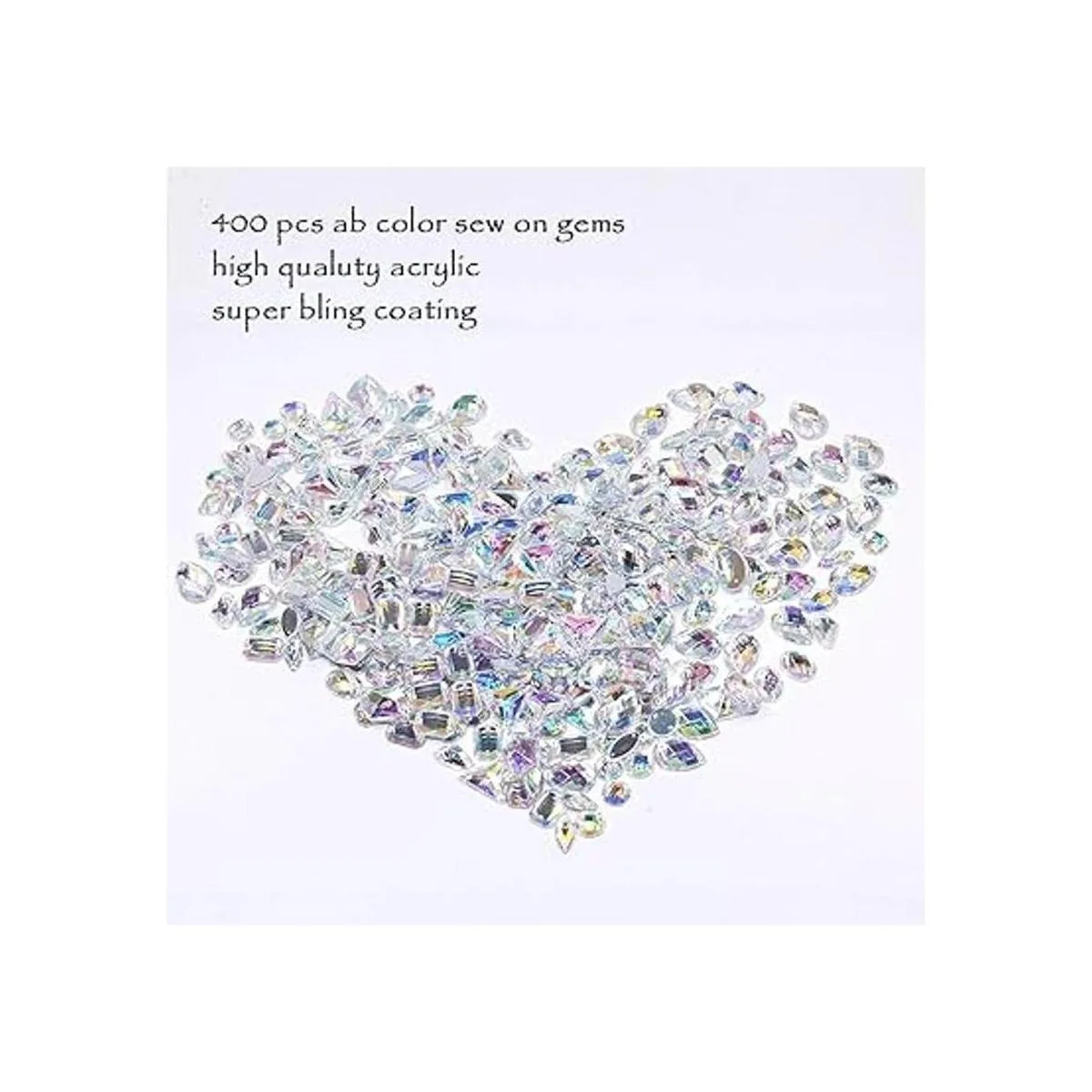 400 piezas para coser en gemas de diamantes de imitación con parte trasera plana AB gemas transparentes para coser en gemas de cristal AB acrílico para proyectos de bricolaje ropa decoración de vestir
