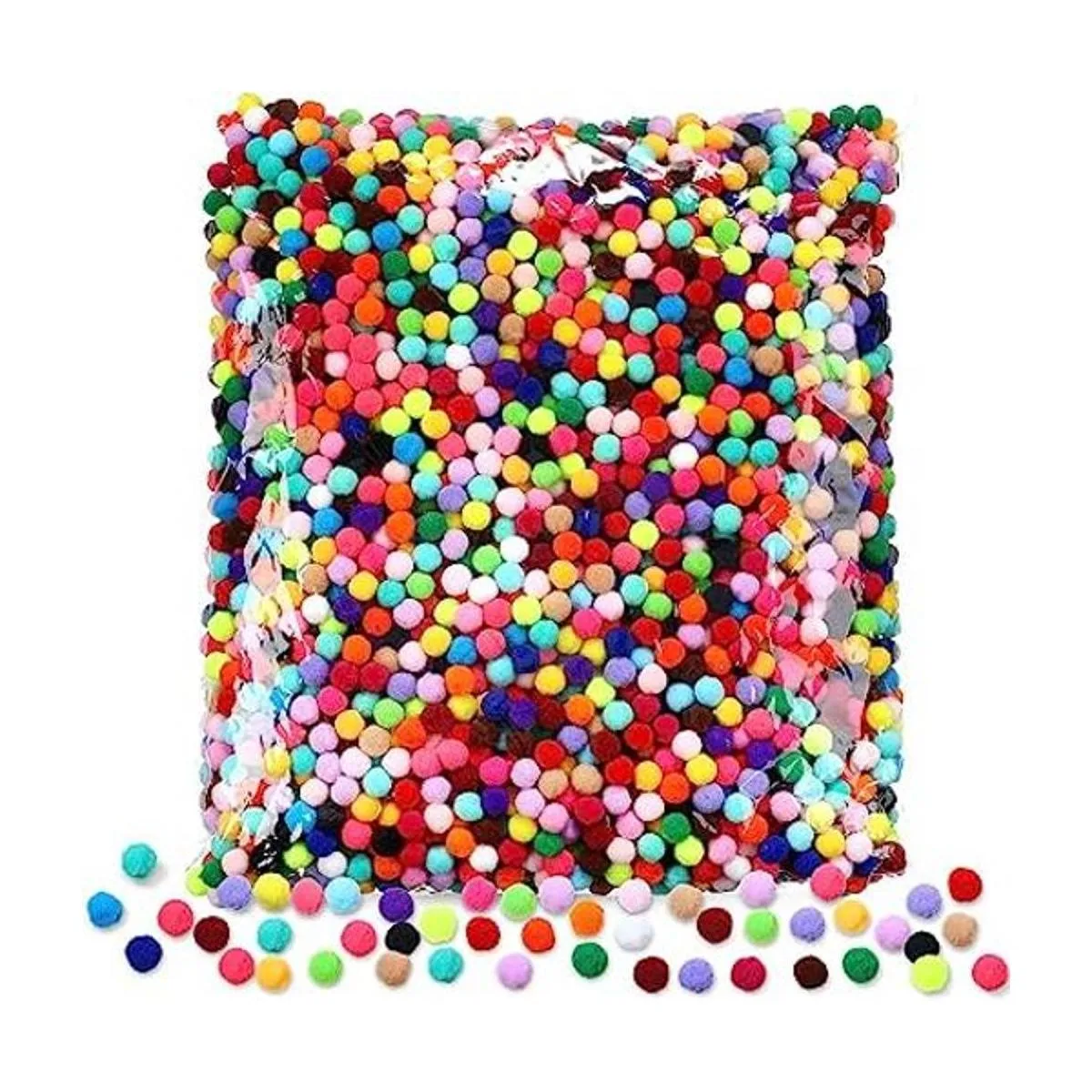 Material suave y esponjoso: nuestros pompones multicolor para manualidades están hechos de poliéster de calidad, hechos en hilo y luego cortan y calientan en forma de bola, suave en textura y cómodo al tacto, seguro tanto para niños, adultos como para mascotas al tacto