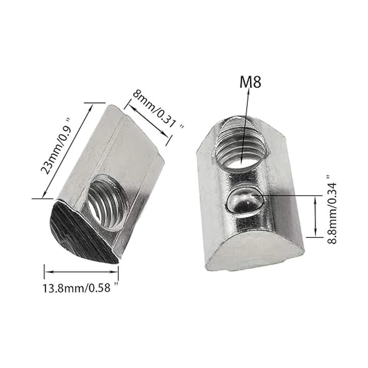 4040 Series M8 T Tuercas de ranura Rollin Spring Ball Cargado Tuercas elásticas Acero al carbono para 4040 Series Aluminio Extrusión Perfil Rail con 0.315 in Ranura para Impresora 3D 20 unidades