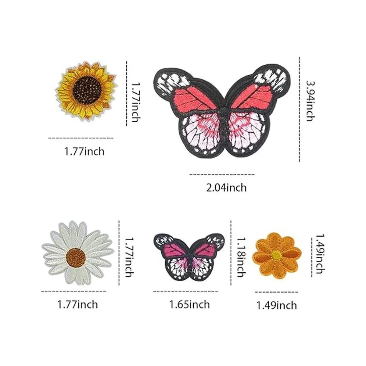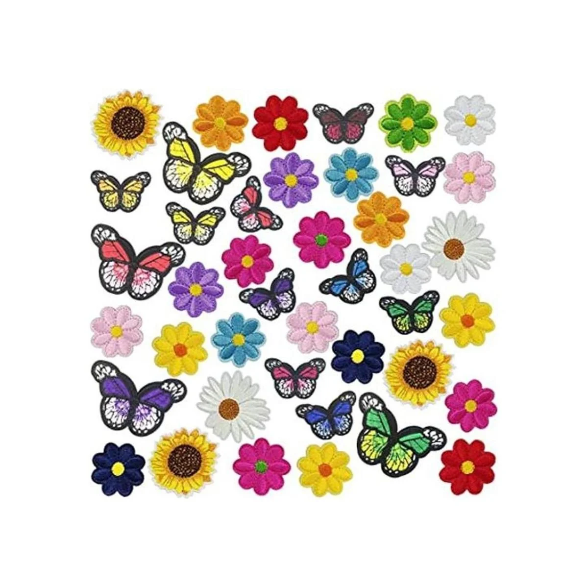 42 parches bordados de mariposa para planchar con flores, parches de margaritas de girasol para ropa, juego de parches para coser en chaquetas, jeans, bolsas, ropa, manualidades, decoración de bricolaje