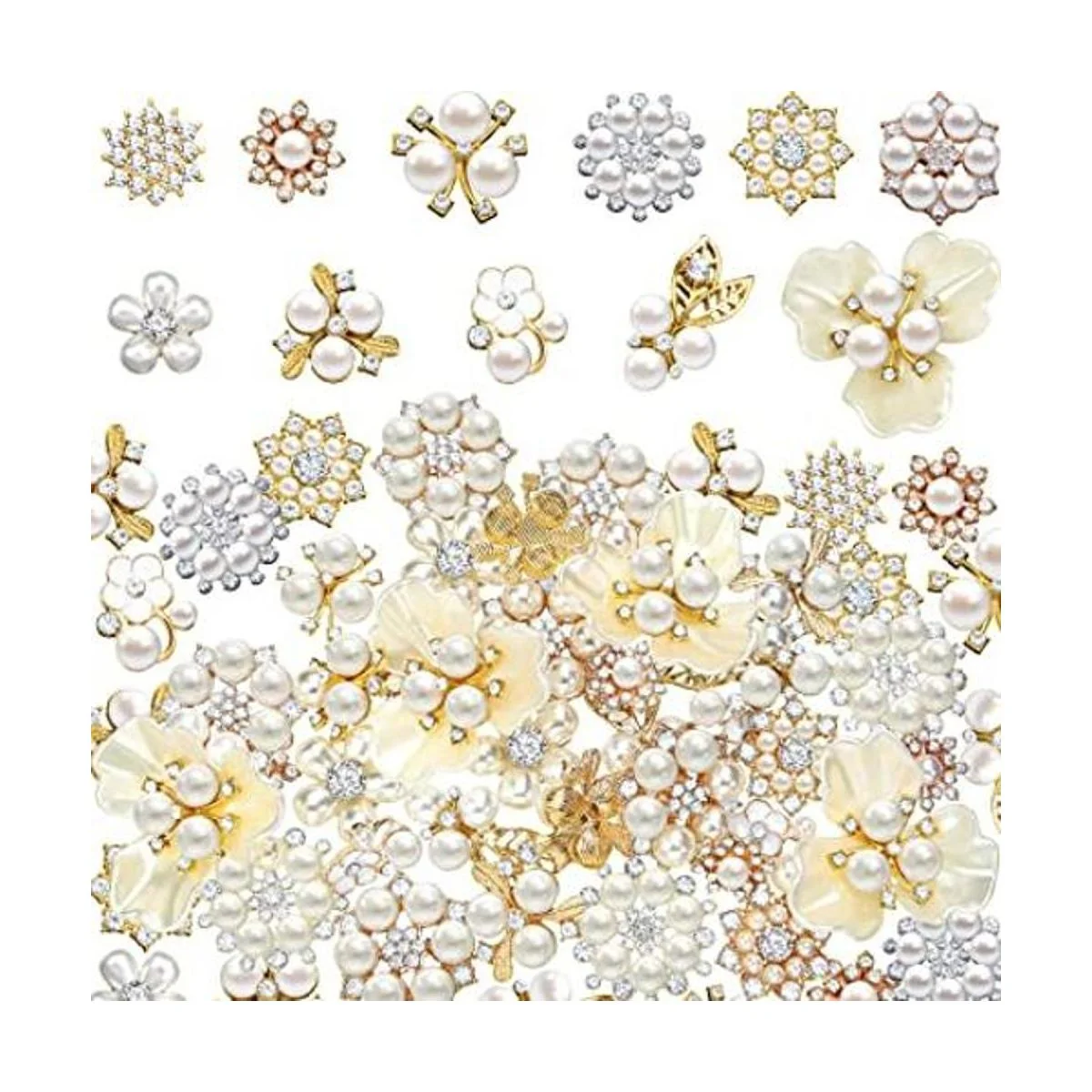 44 piezas de perlas de diamantes de imitación de diamantes de imitación, adornos de perlas de imitación, broche de perlas de aleación, colgantes florales para hacer joyas, ropa, bolsas, zapatos, suministros y bodas