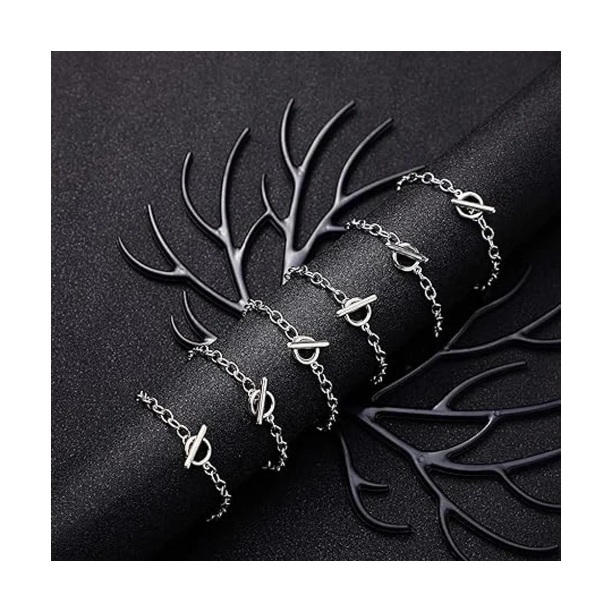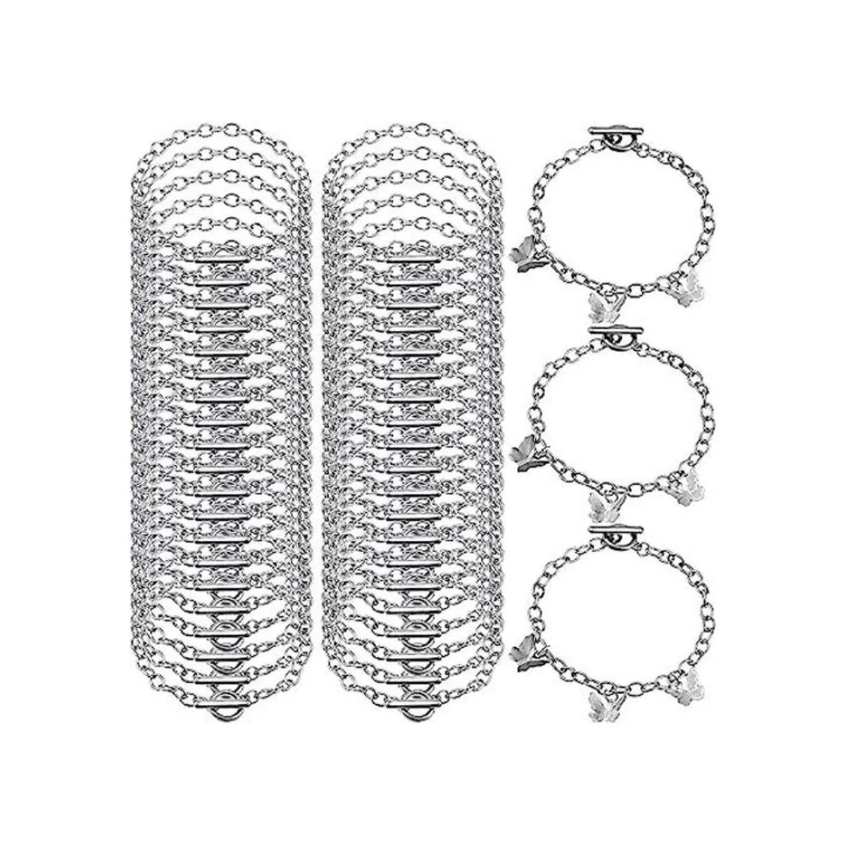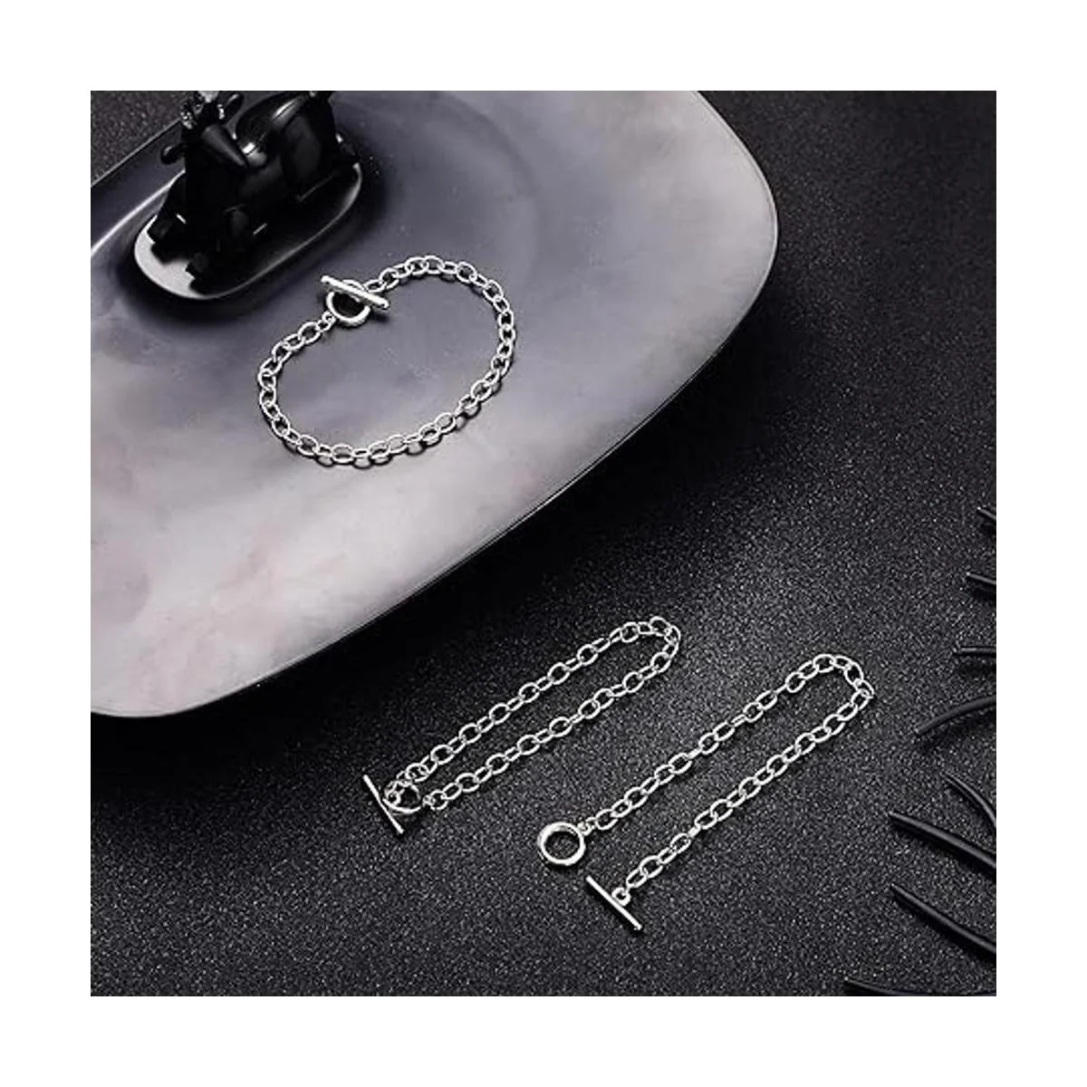 45 cadenas de pulsera con cierre de palanca OT de acero inoxidable, cadenas de eslabones para hacer joyas, pulseras para mujeres, suministros de manualidades de joyería plateado
