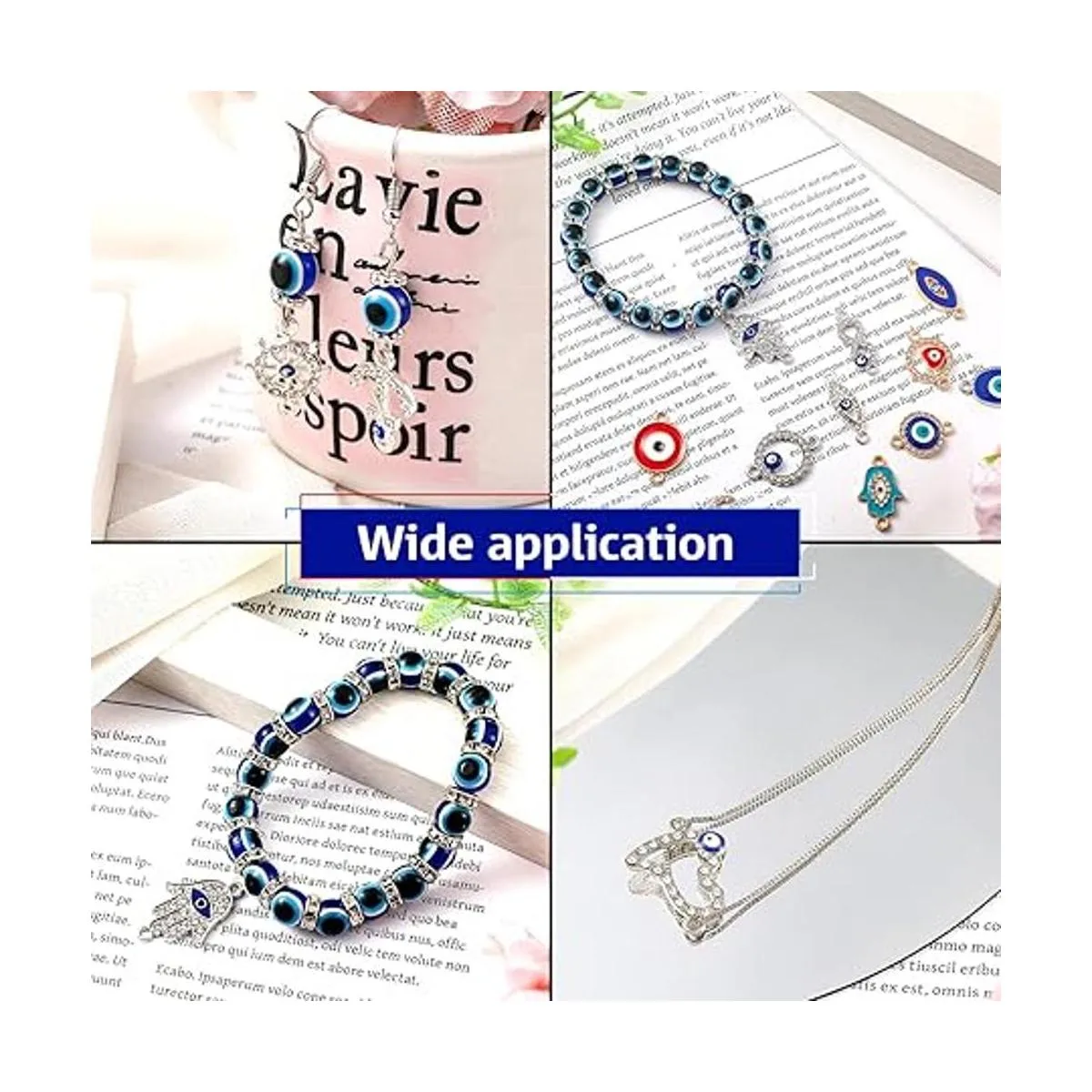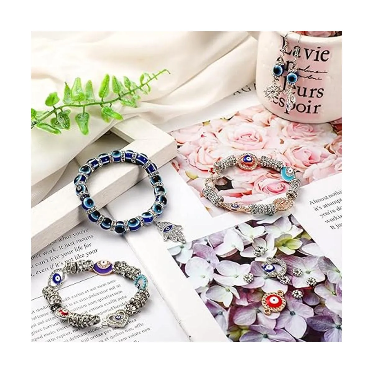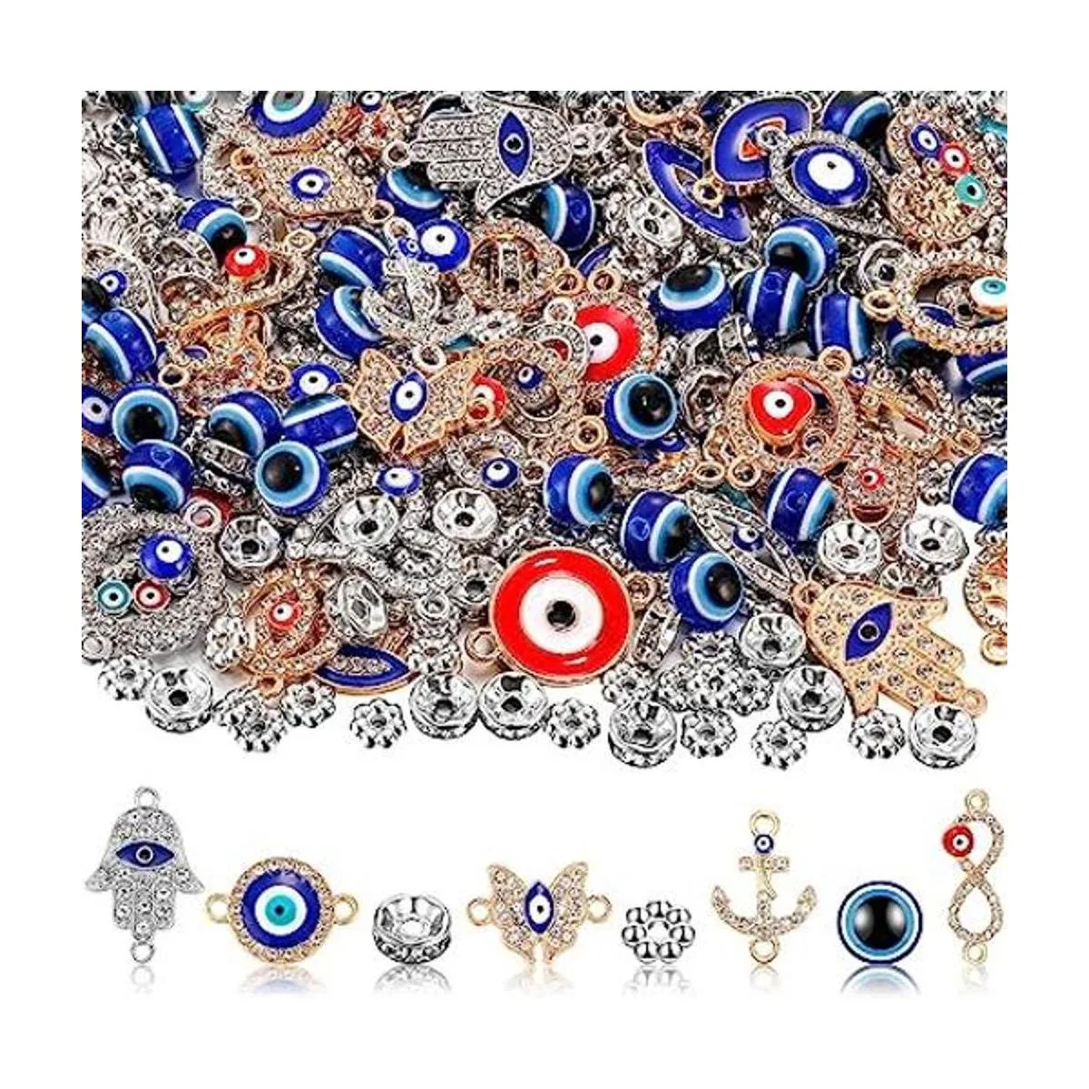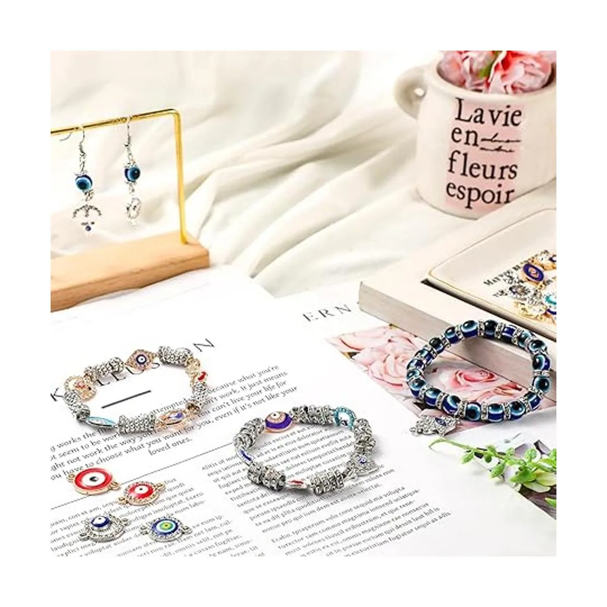 Suficiente para elegir y reemplazar: recibirás 200 cuentas de mal de ojo, 100 cuentas espaciadoras de rondelle, 100 cuentas de flores y 50 conectores de joyería, abundantes en cantidad y ricos en estilo, suficiente para usar o reemplazar; también puedes compartirlas con tu amigo y miembro de la familia