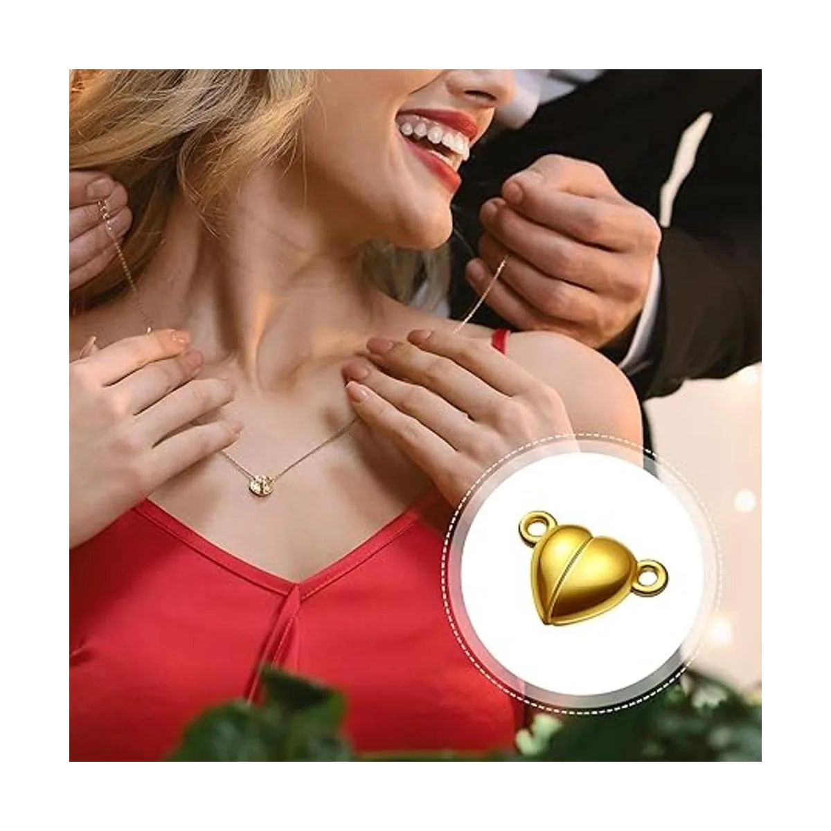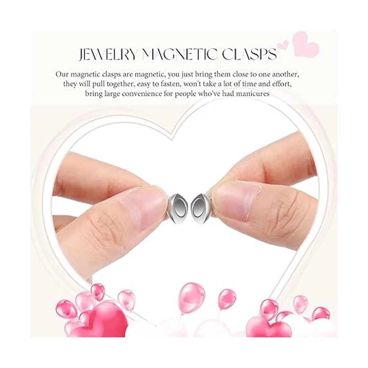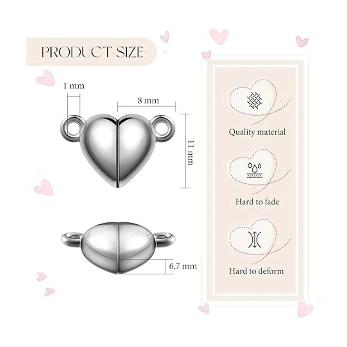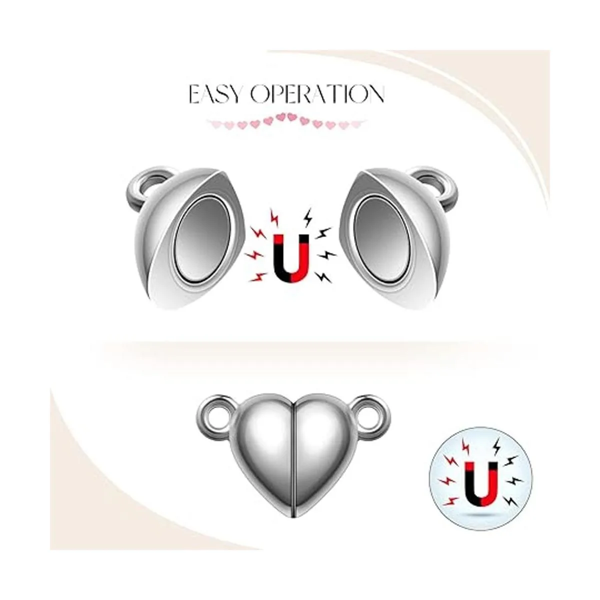 Fácil de usar: este imán en forma de corazón cuenta con un anillo de salto fijo en cada extremo del cierre, para permitir una fácil fijación de la cadena, por lo que puedes fijarlo en tus collares y pulseras favoritos para accesorios instantáneos