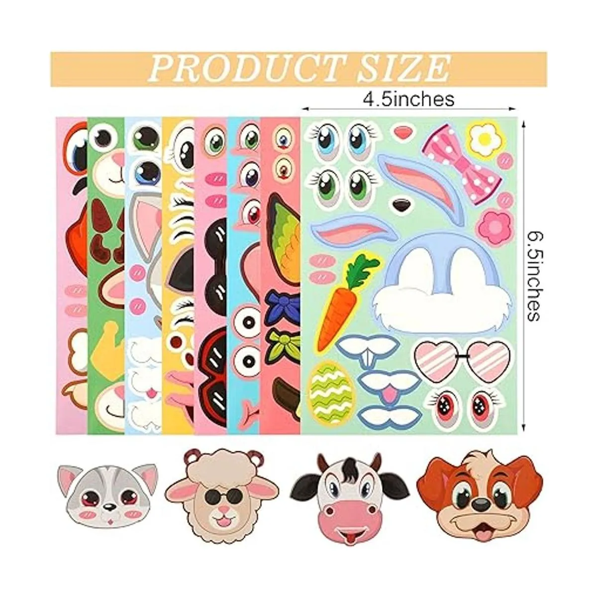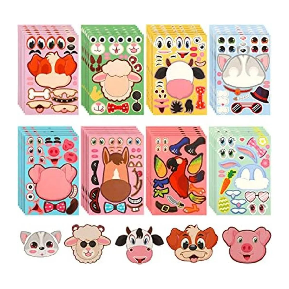 48 hojas de pegatinas de animales de manualidades con 8 diseños para crear tu propia pegatina de animales con diseño de zoológico, divertido proyecto de manualidades para fiestas de niños, regalo de festival, recompensas, arte